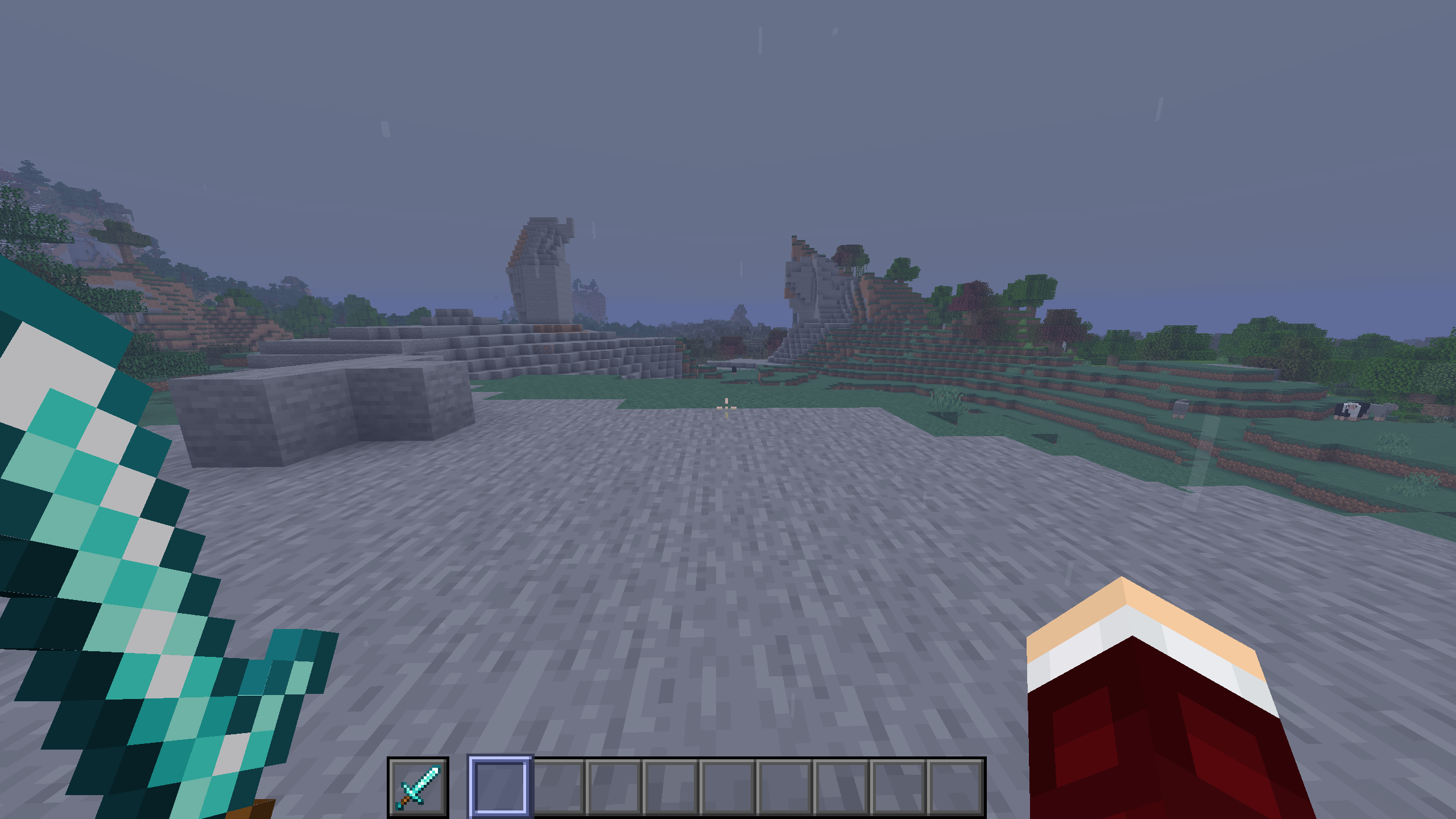 Observe how the screen overlay does not apply to the 1st person hand / 1st person held items.