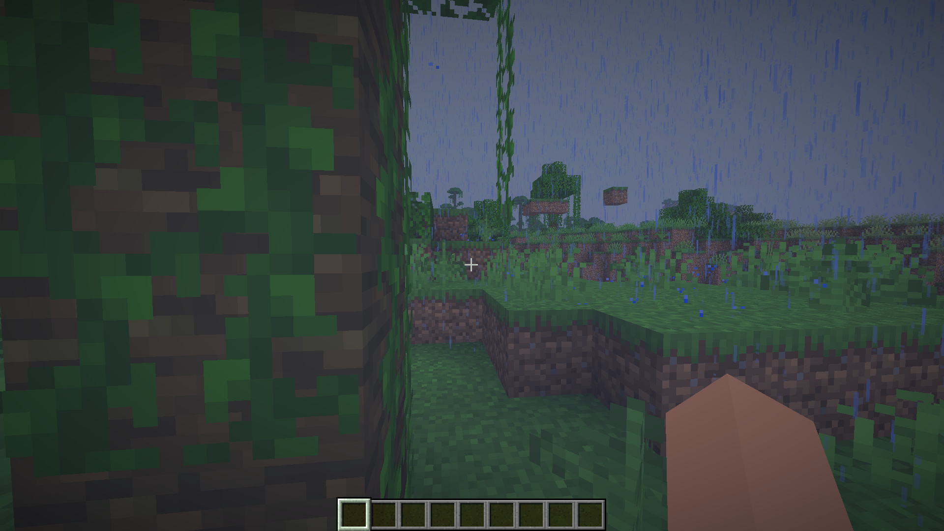 My suggestion is to keep the fog effect, but adjust its intensity so it decreases as the player approaches nearby blocks, and fades out entirely in covered or indoor areas. This would make the effect feel more immersive and context-aware. I believe this should be technically feasible, given that the game already detects when the player is under a roof (e.g., by altering the rain sound).