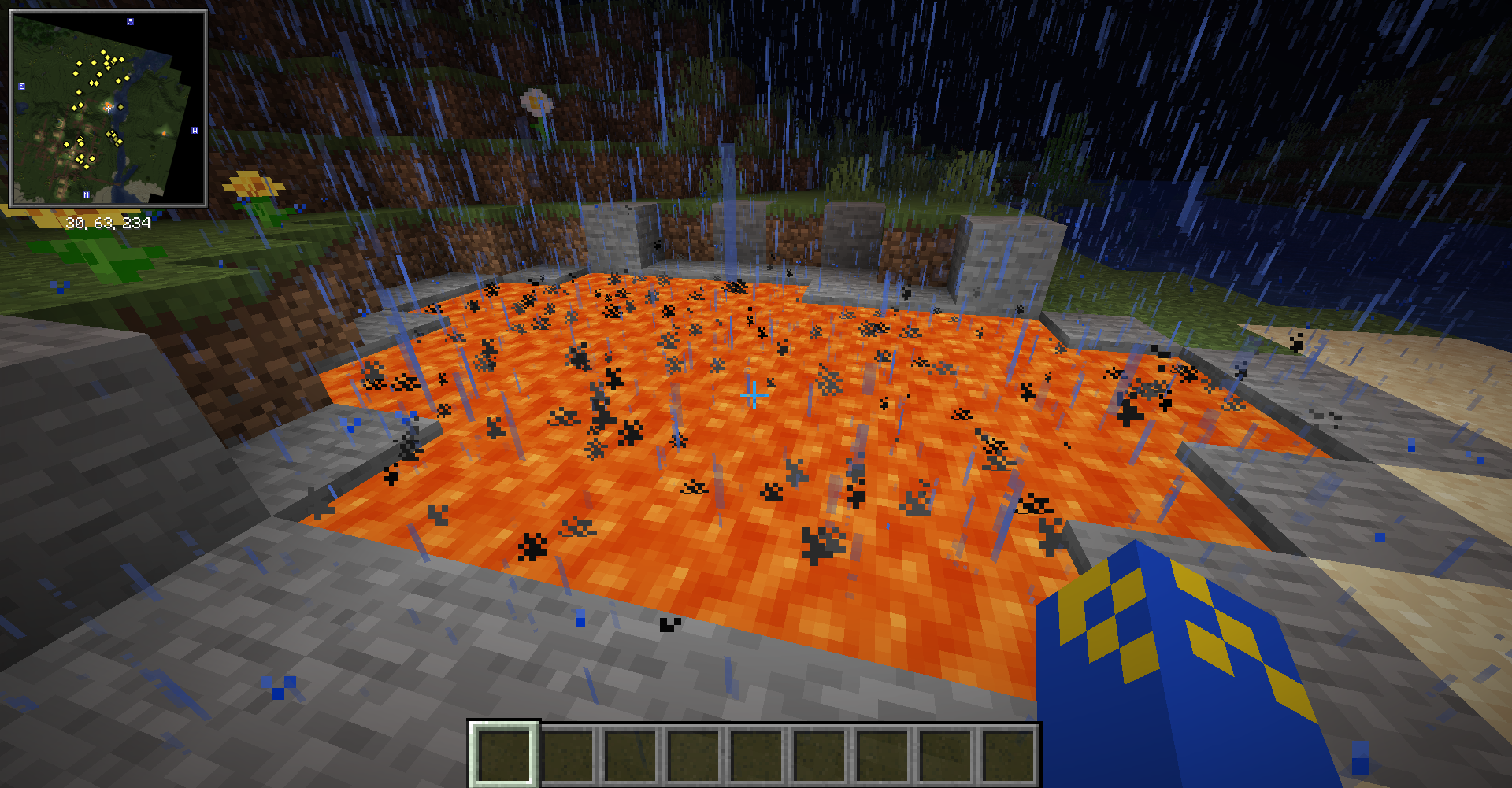 When it starts raining and I'm close to a lava pool it summons a lot of particles, and it lags my game. To make it stop make less particles summon when raining.