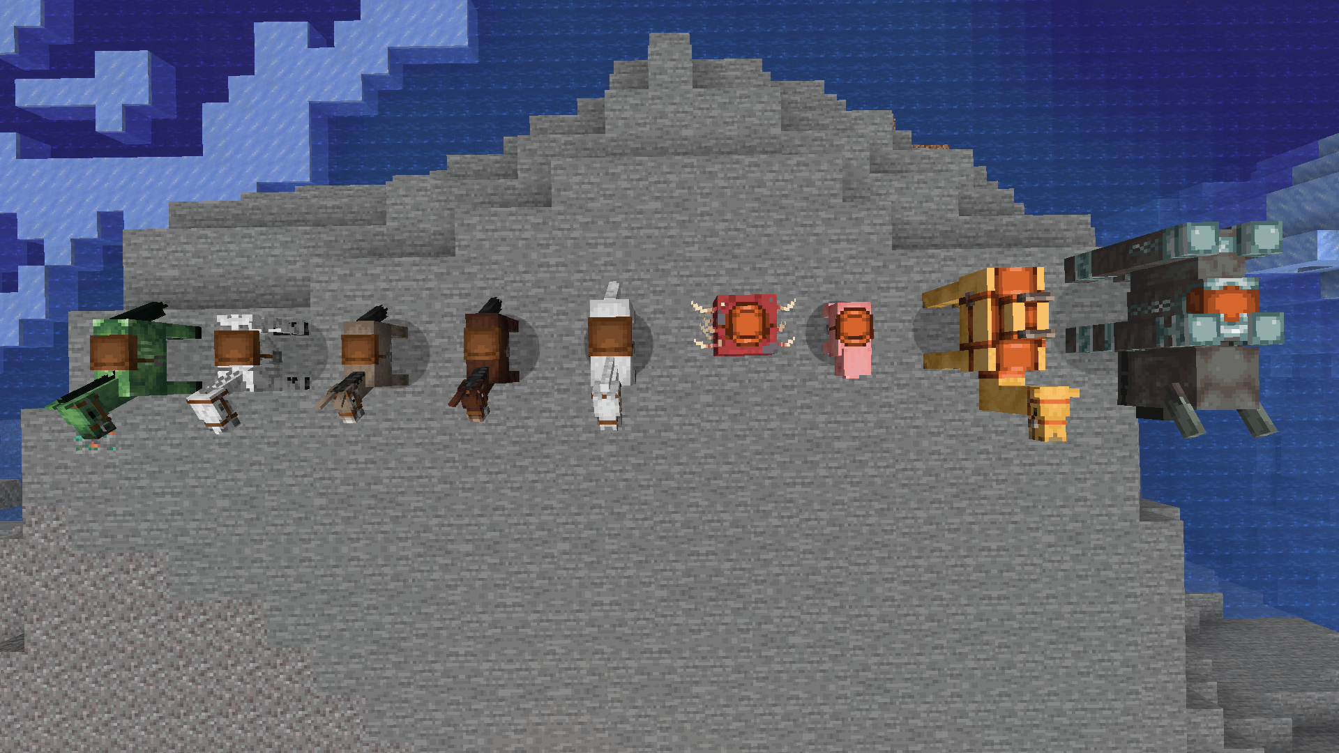 Horses, zombie horses, skeleton horses, donkeys and mules still use the old, brown, "Horse saddle"/Mo' Creatures by DrZhark mod’s texture.