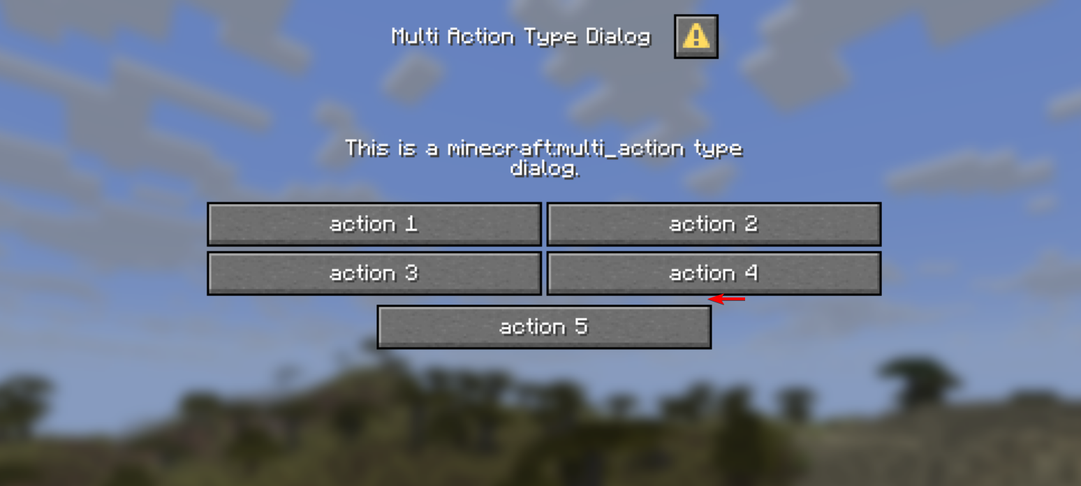 /dialog show @s {"type":"minecraft:dialog_list","title":{"text":"Example"},"button_width":100,"dialogs":["custom_options","custom_options","custom_options","custom_options","custom_options"]}Attachments