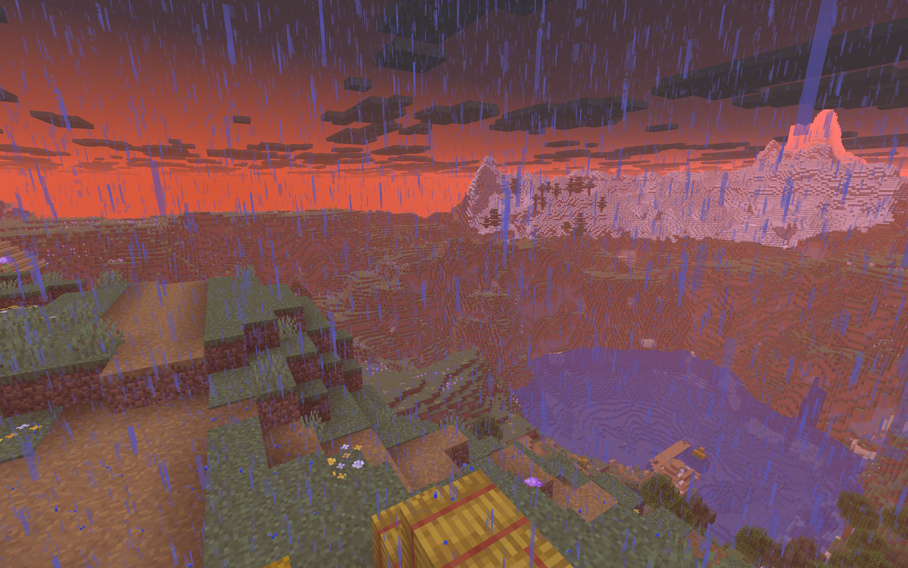 This seems to be a request for Night Vision to reduce the potency of the rainy-weather fog effect. This may be a good idea, and it’s entirely possible that Mojang didn’t fully test the night vision-rain interaction when they implemented the fog changes, but given that the current behavior isn’t a severe impediment to gameplay (I personally don’t think it looks too bad; my gripe is more with the way they went about rain fog in the first place), this is still a feature request and therefore not valid on this bug tracker. Consider using the Feedback Discord to advocate for changes to the new rainy weather effect.