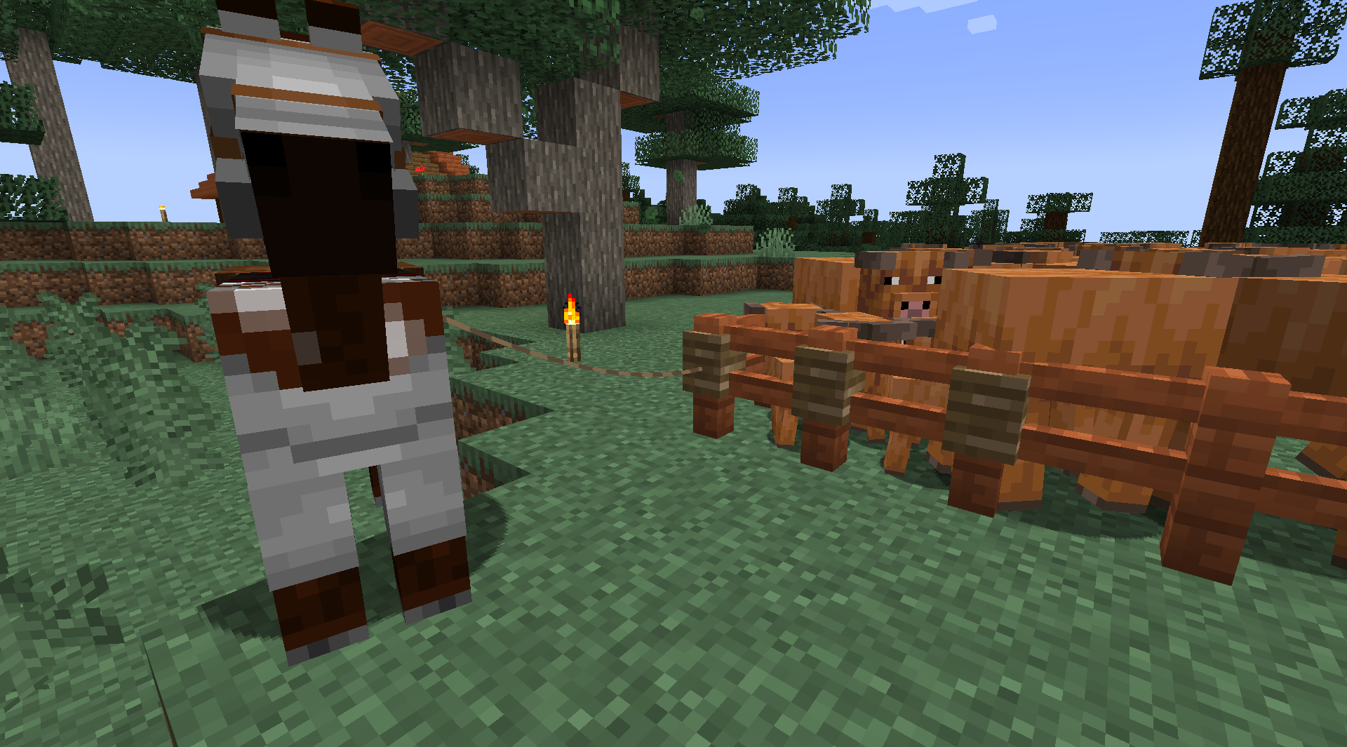 When you break a lead that is attached to a fence and a horse by riding the horse away from the fence, the lead breaks and is dropped as an item, but the fence skin still looks like a lead is attached to it.