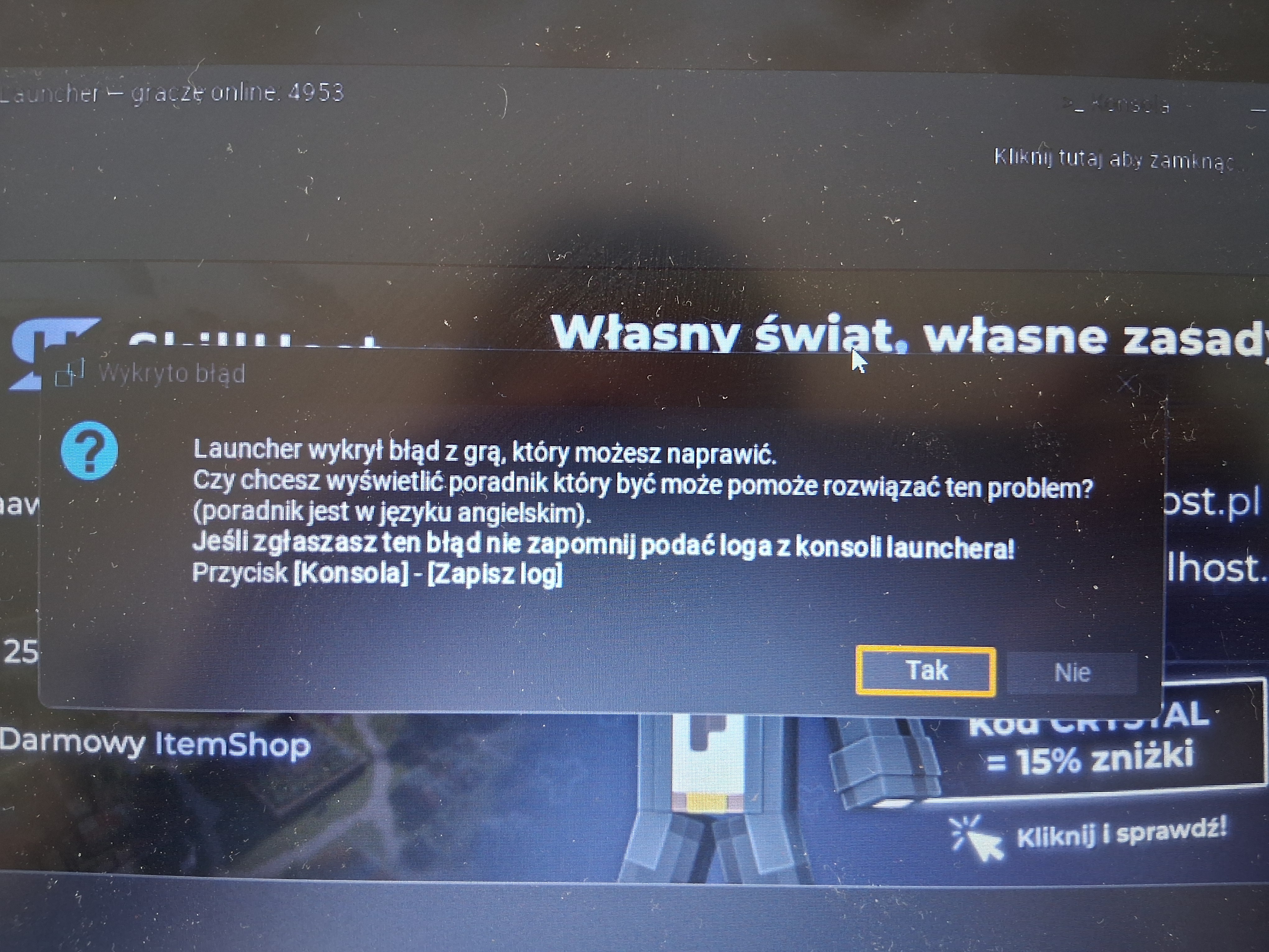 Gdy wchodzę na minecraft pojawią się błąd nie da się pograć proszę o naprawienie tego błędy
