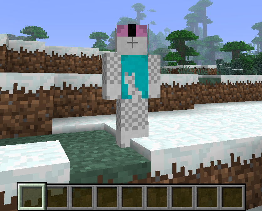 2.Walk to snow slab and trying to be between snow and regular dirt block.