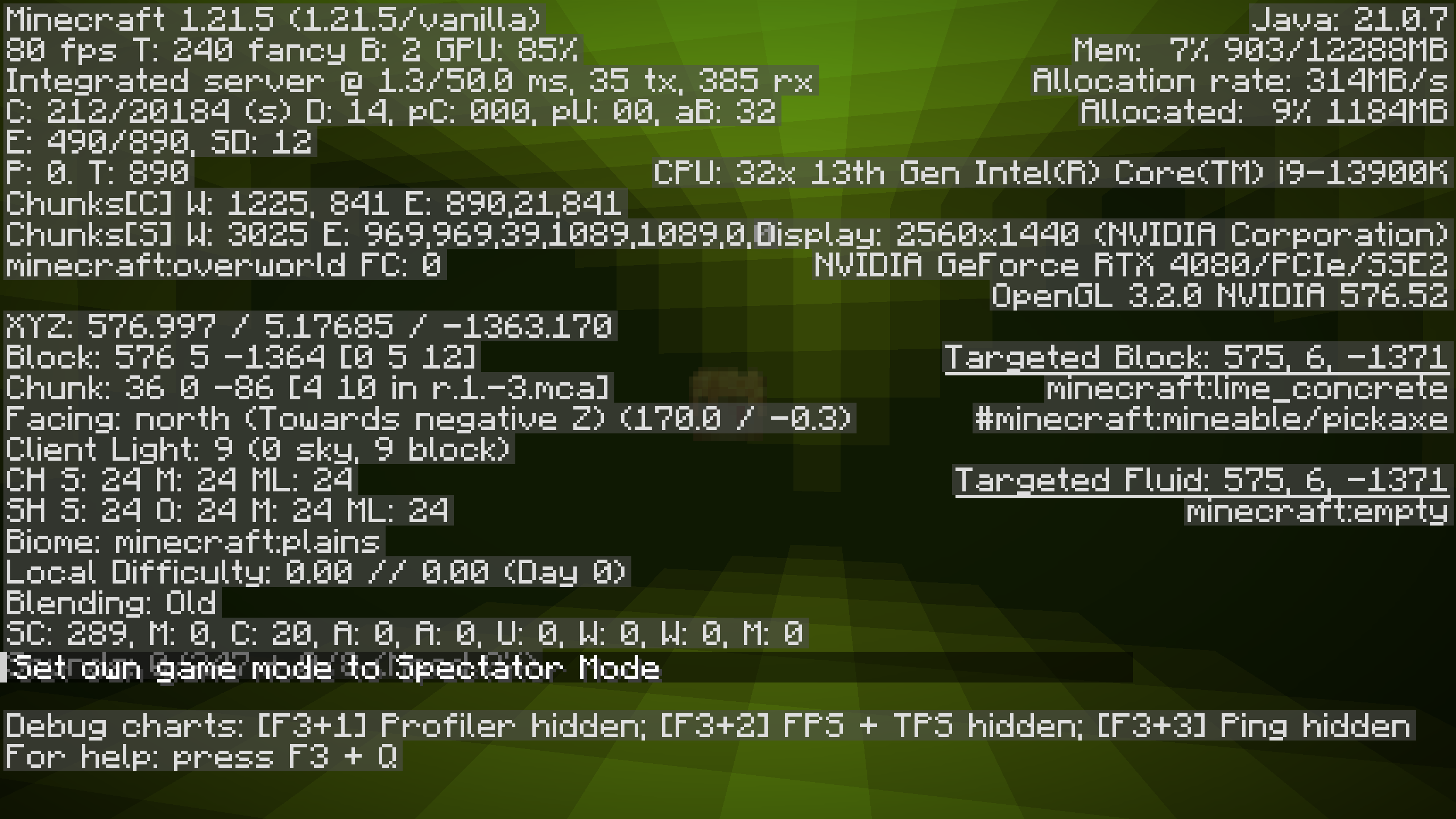 Basically in 1.21.4 when looking at this box, the game renders all the entities pretty well, and my frames are not impacted (they stay at a consistent 180 fps when I’m looking at the box from outside, and when I’m inside the box it stays at around 230 fps. However, when I update to 1.21.5 my frame rate takes a massive hit.