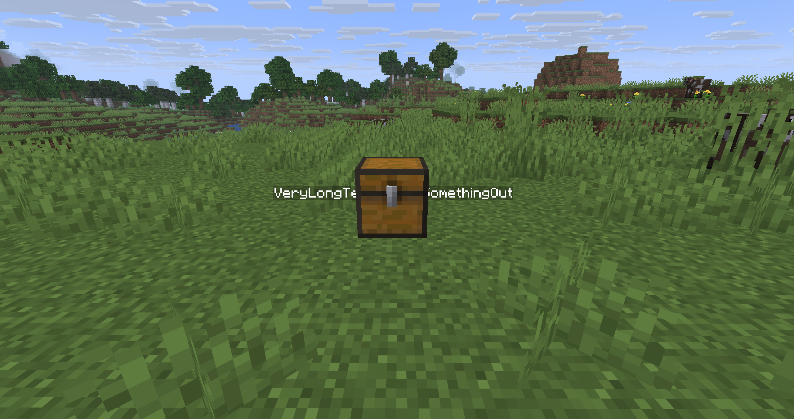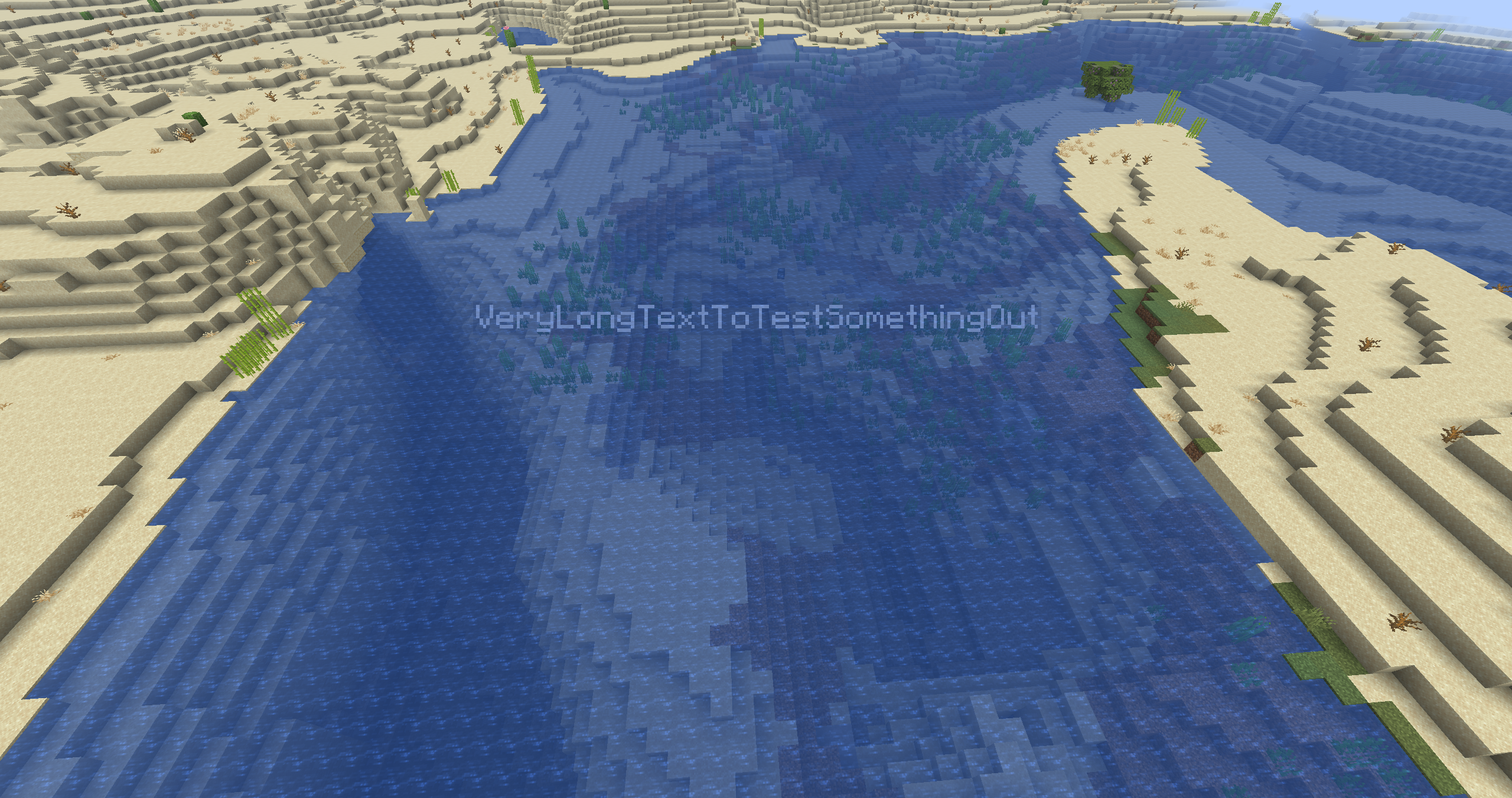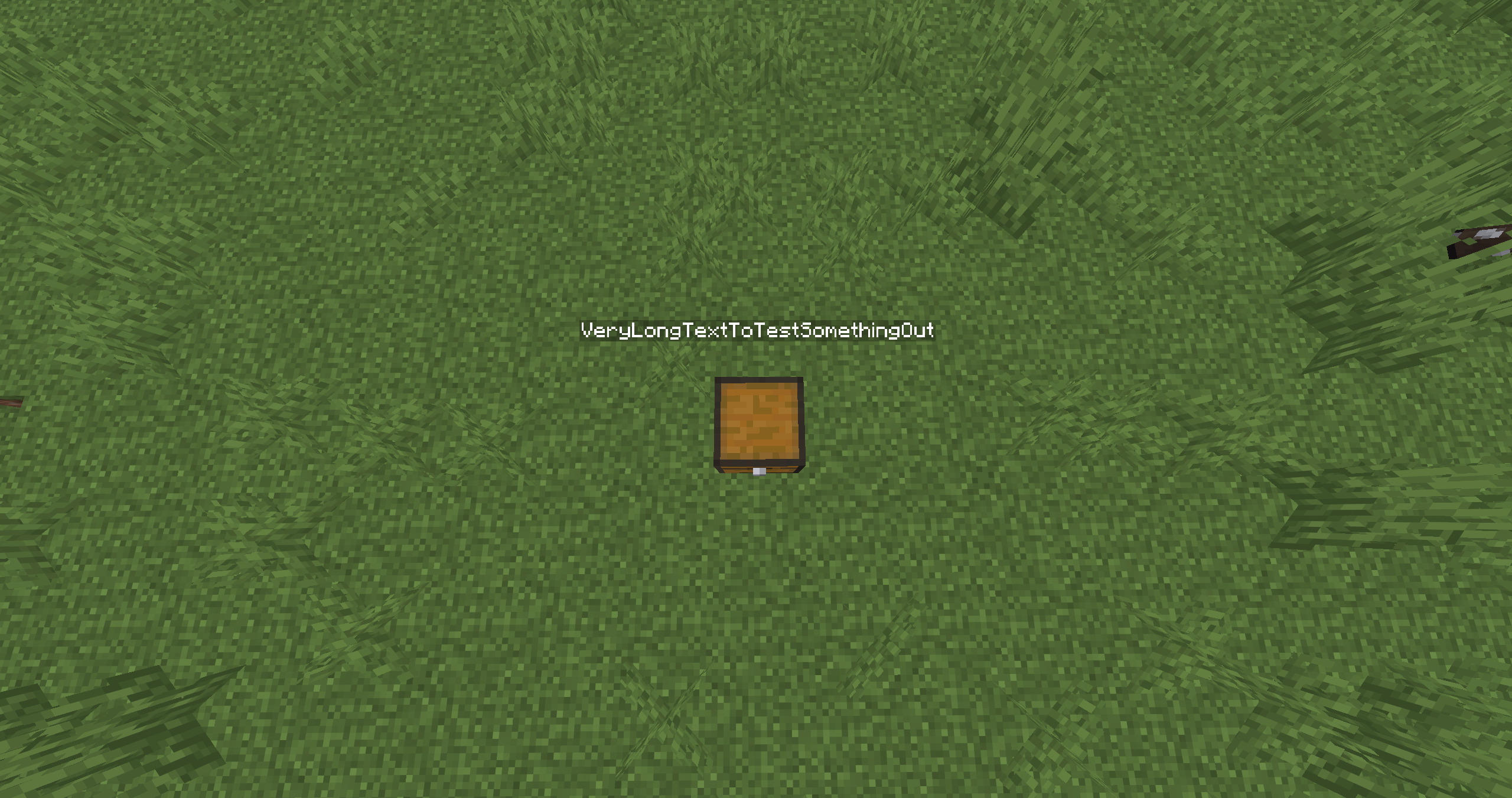 /summon text_display ~ ~ ~ {alignment:"center",billboard:"center",see_through:true,text:"VeryLongTextToTestSomethingOut"}The villager and blocks were placed after the text display was summoned, but the same result happens if it’s the other way around with the text displayed summoned last.