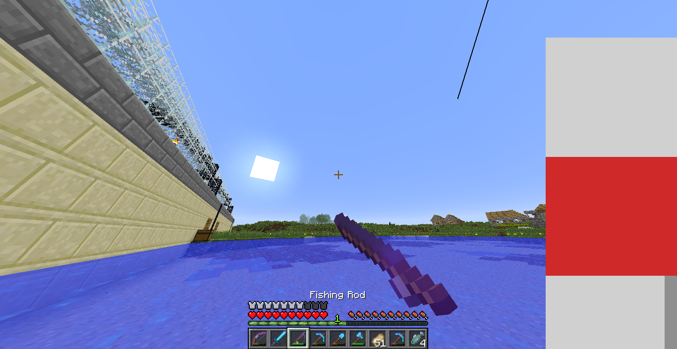 It looks like the rendering of the fishing line between the rod and the float is momentarily very off. Does it later render normally (i.e. when float is on the water)?