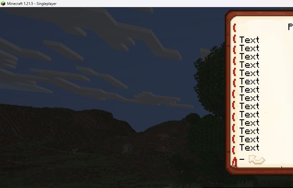 Books with a glitched line amount being 15 (a books default limit is 14 lines) wil complety break in the 1.21.6 update you cant edit delete op place text on these pages and a scrollbar is visible on the left.
