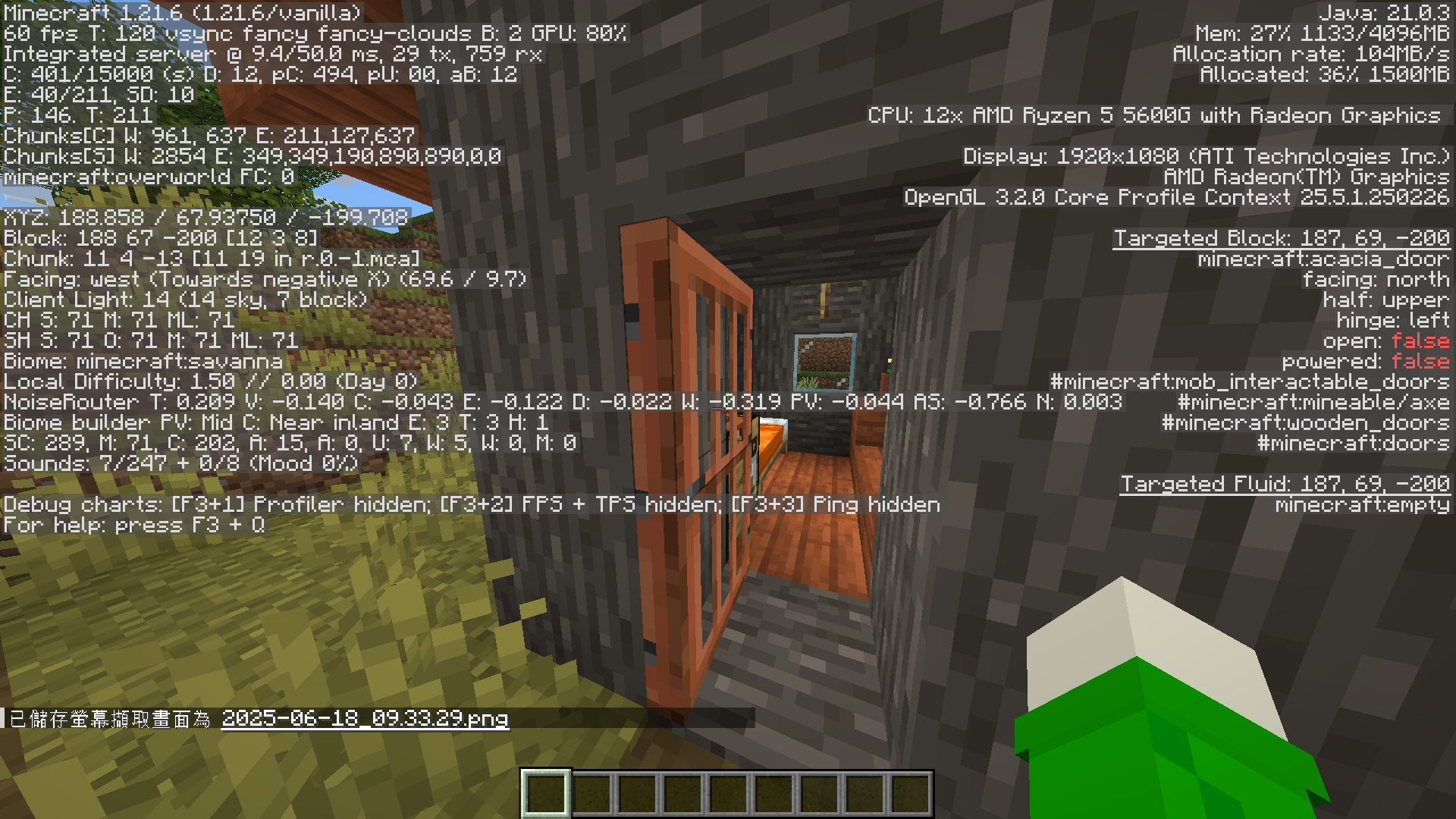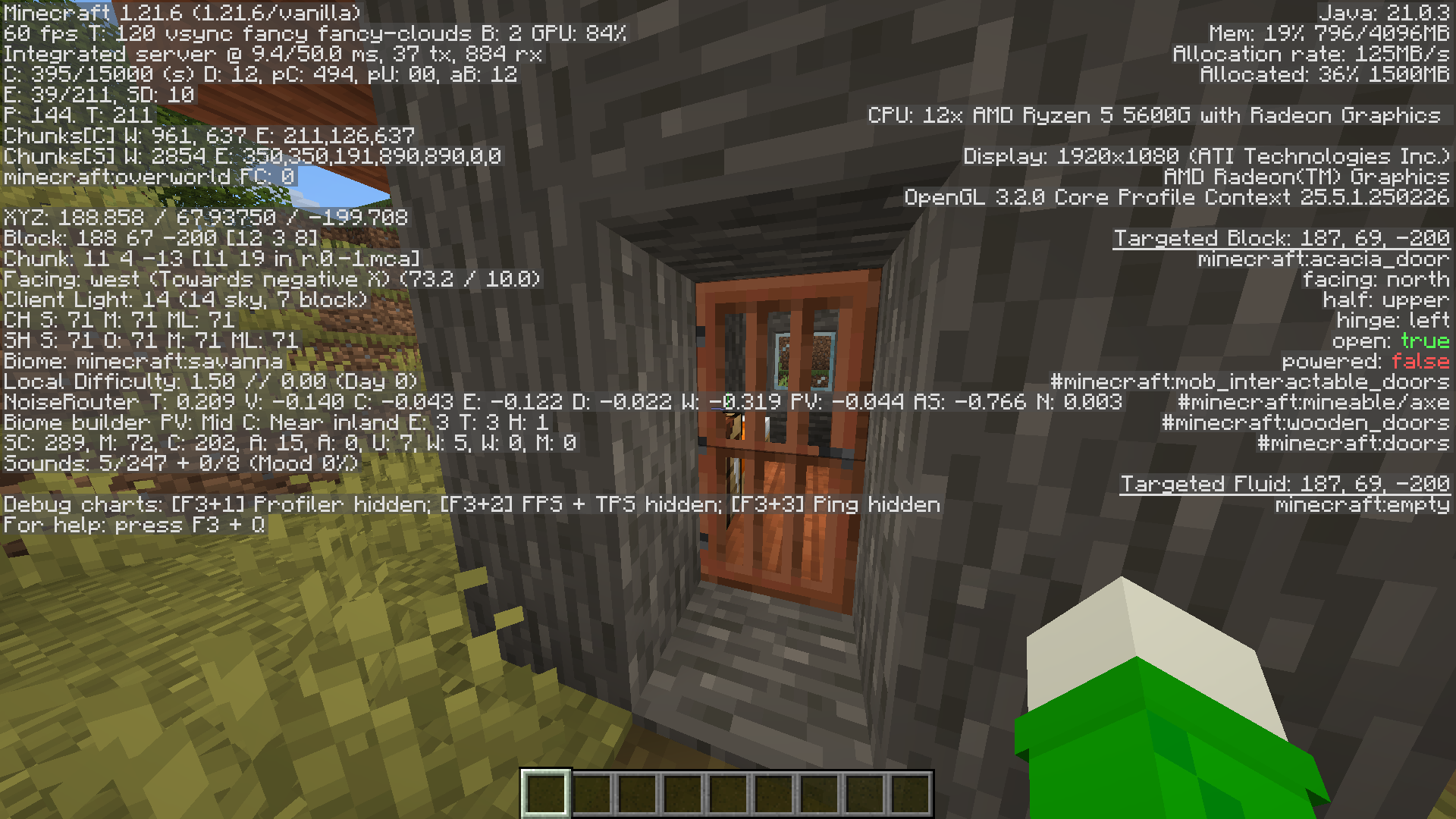 Some naturally generated doors in savanna villages with a wrong open/close status can cause villagers to get stuck in the house.