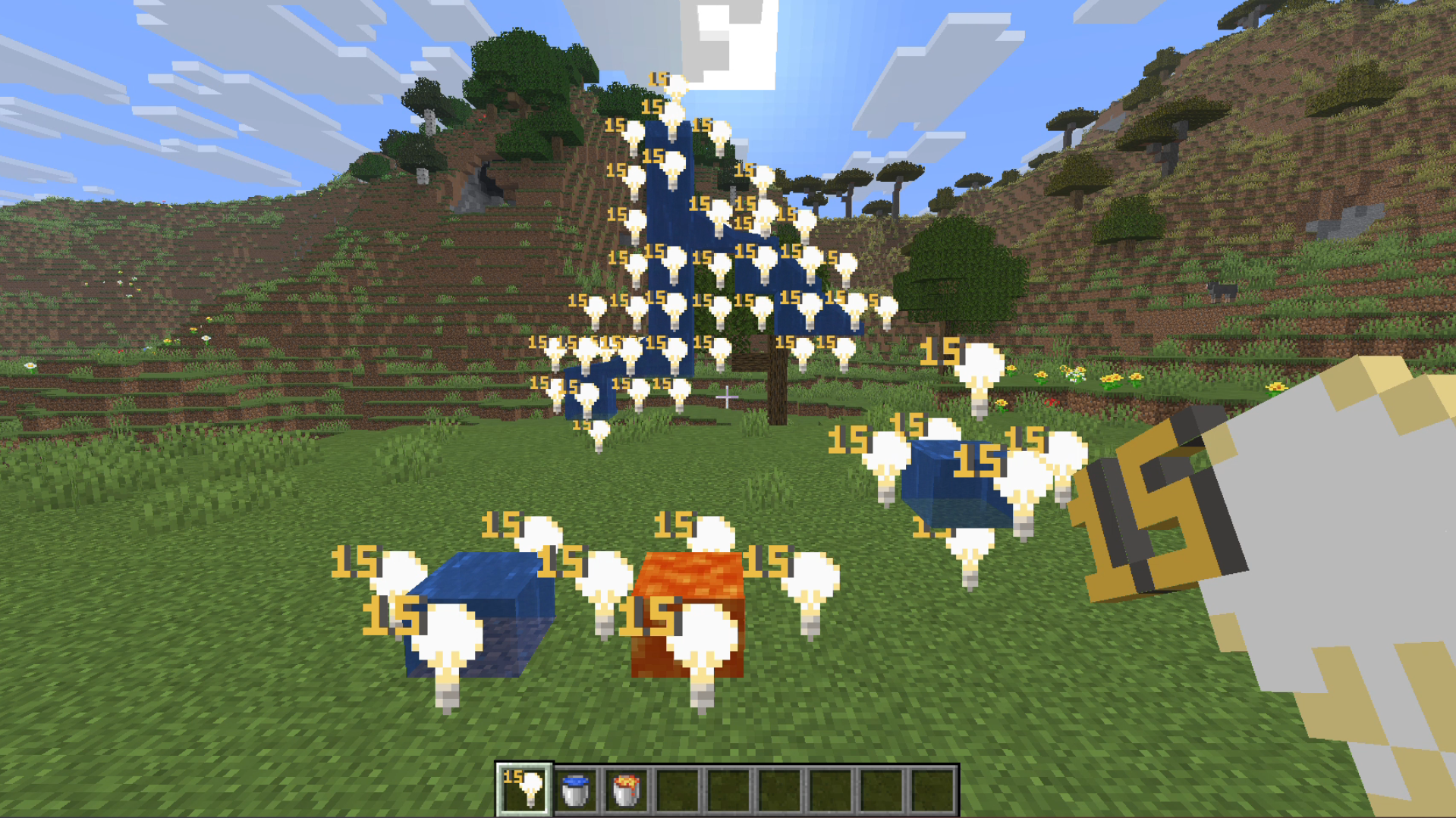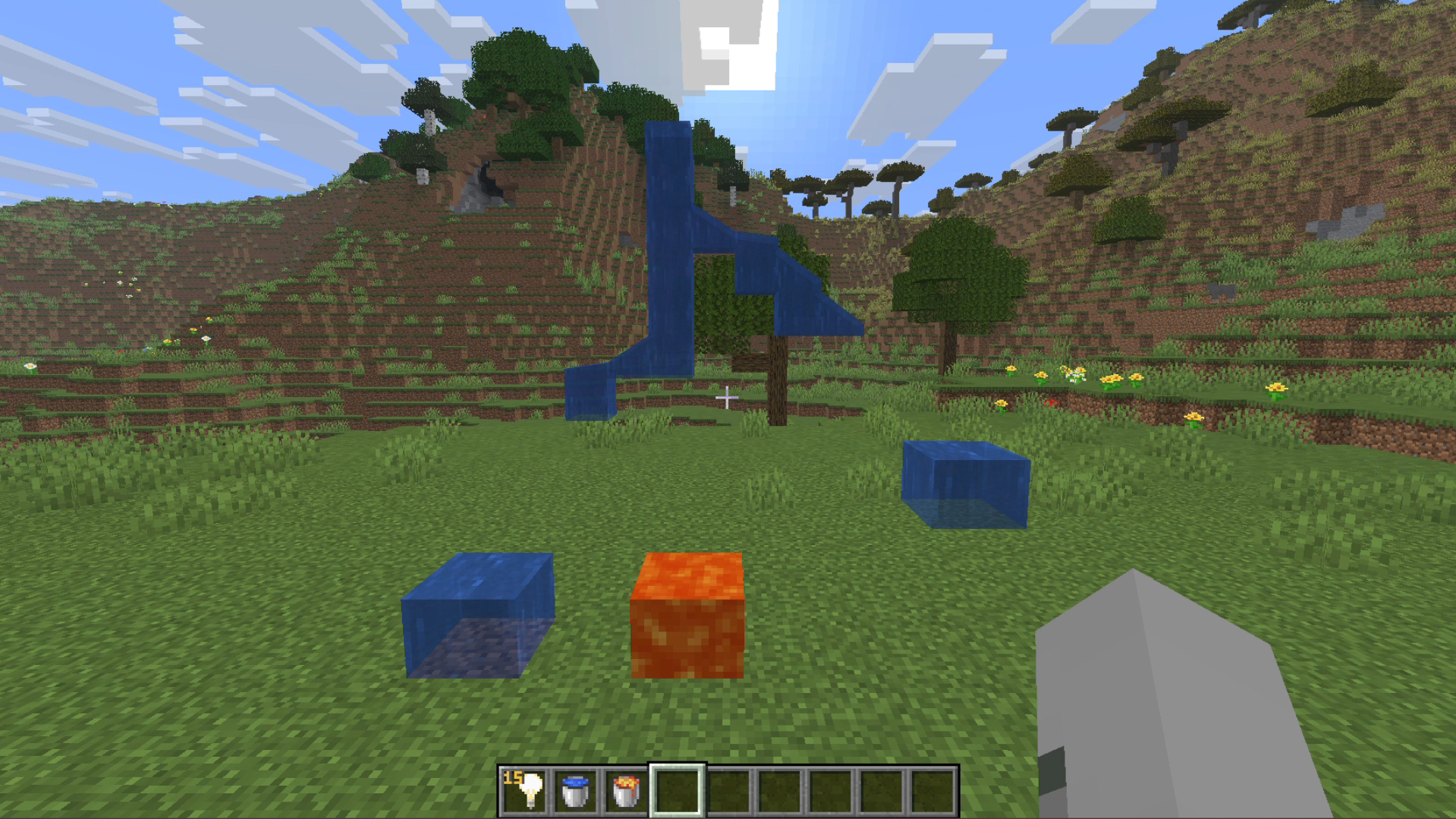 When water (or lava) comes into contact with a light block (minecraft:light) it is expected to be able to flow through the light block, due to the light block having no collision, block outline, or visibility, but what it actually does instead, is that the water/lava treats the light block as if it was a normal block, and flows around it. You can reproduce this issue by making a 3x3 shape out of light blocks on the ground, and breaking the center light block, after this put water or lava in the center of the light blocks and the water will not flow in any direction. This bug is also able to cause the water/lava to float in the air, or flow in a specific path by doing a similar version of the directions I already wrote, or you can try following the images that I included below