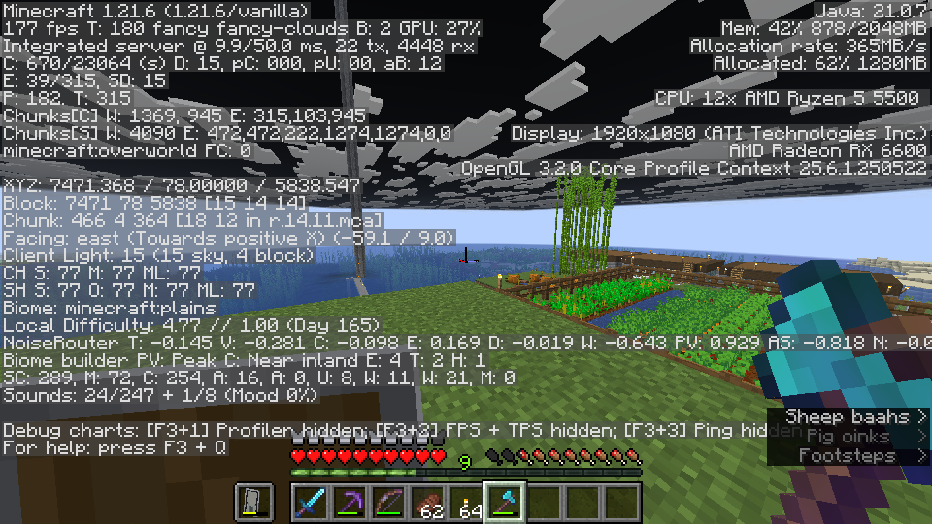 In particular, it would be appreciated if you would like to provide us with your system specifications. To do so, please take a screenshot of your debug screen (enabled by pressing the F3 key) and attach it to the parent ticket.