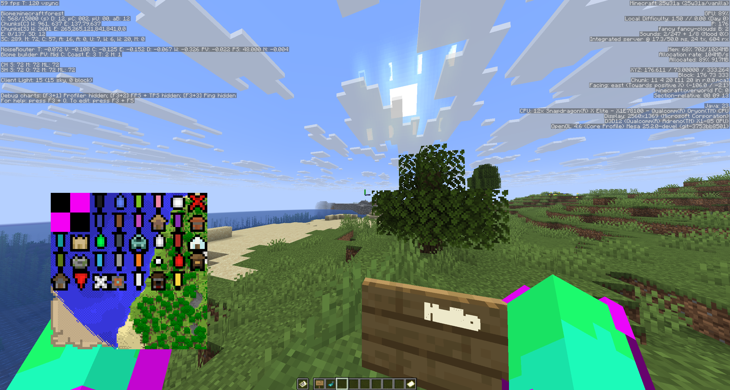 @Emily Dill @Lynda Lutkin Please take a screenshot or record a video of the issue regarding glowing signs occurring and attach it to this report. Be sure to show your debug screen in that media, which can be enabled by pressing the F3 key.