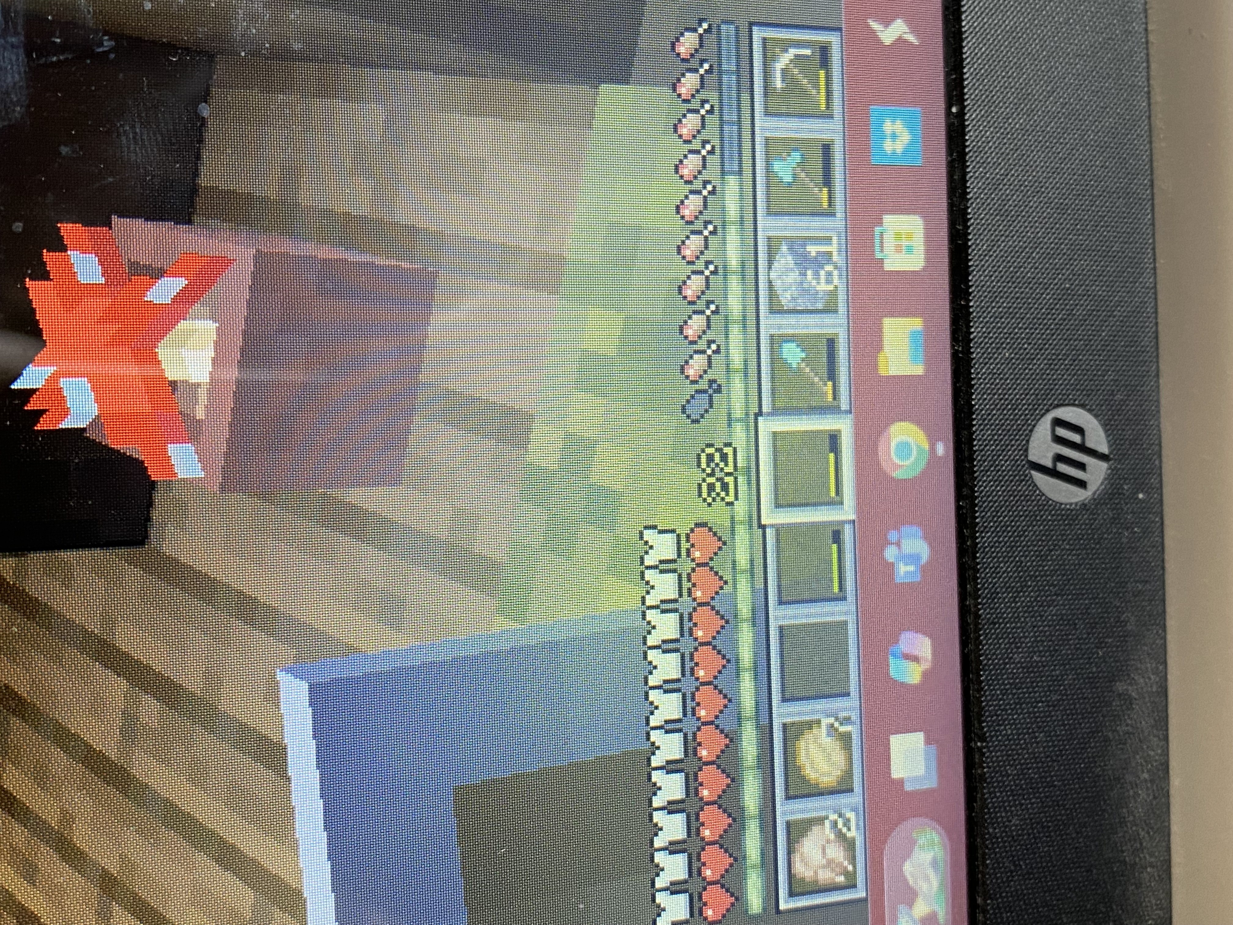 Icons greyed out/item icons disappearing from inventory bar, inventory bar completly disappearing, pixels glitching, game freezing, in-hand item disappearing