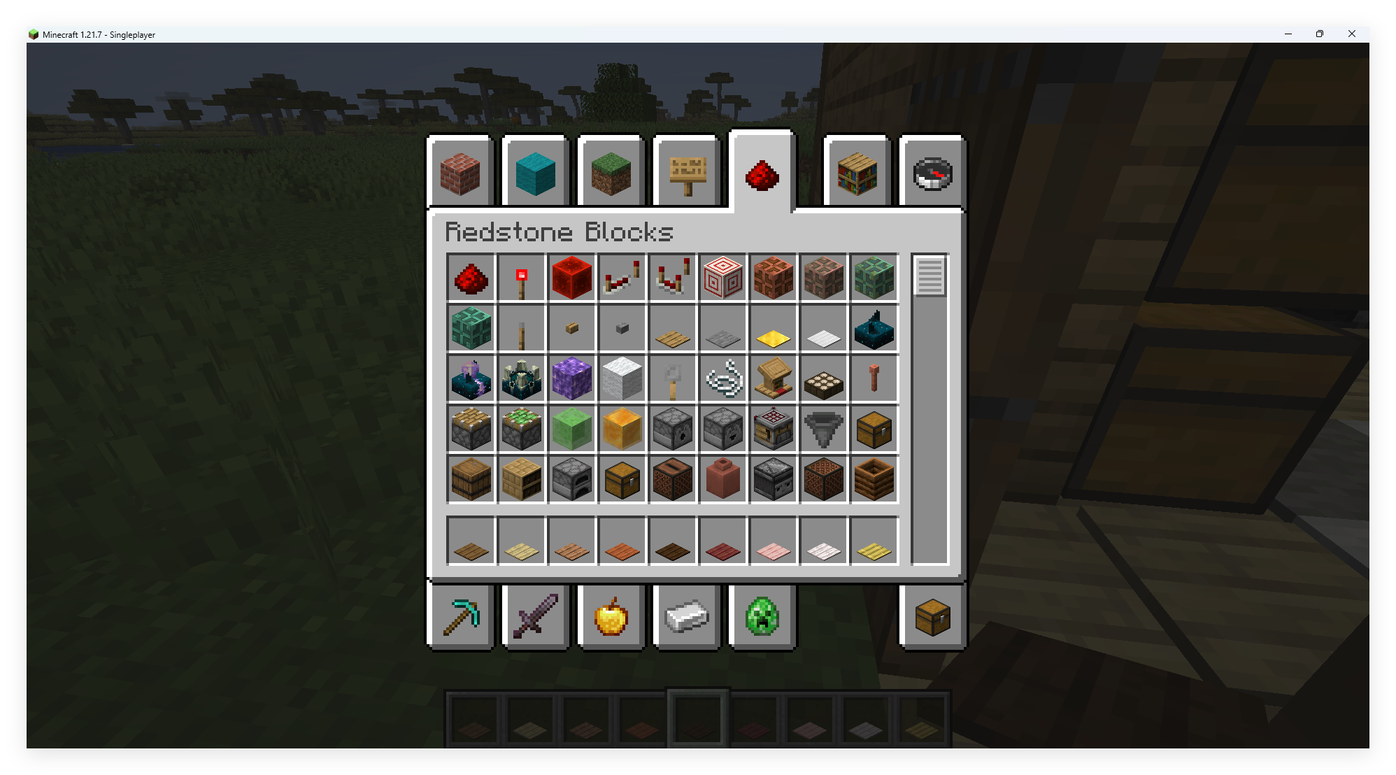 In creative inventory,there are only the oak,stone,light,heavy pressure plate in redstone blocks without spruce,birch,jungle,acacia,dark oak etc.