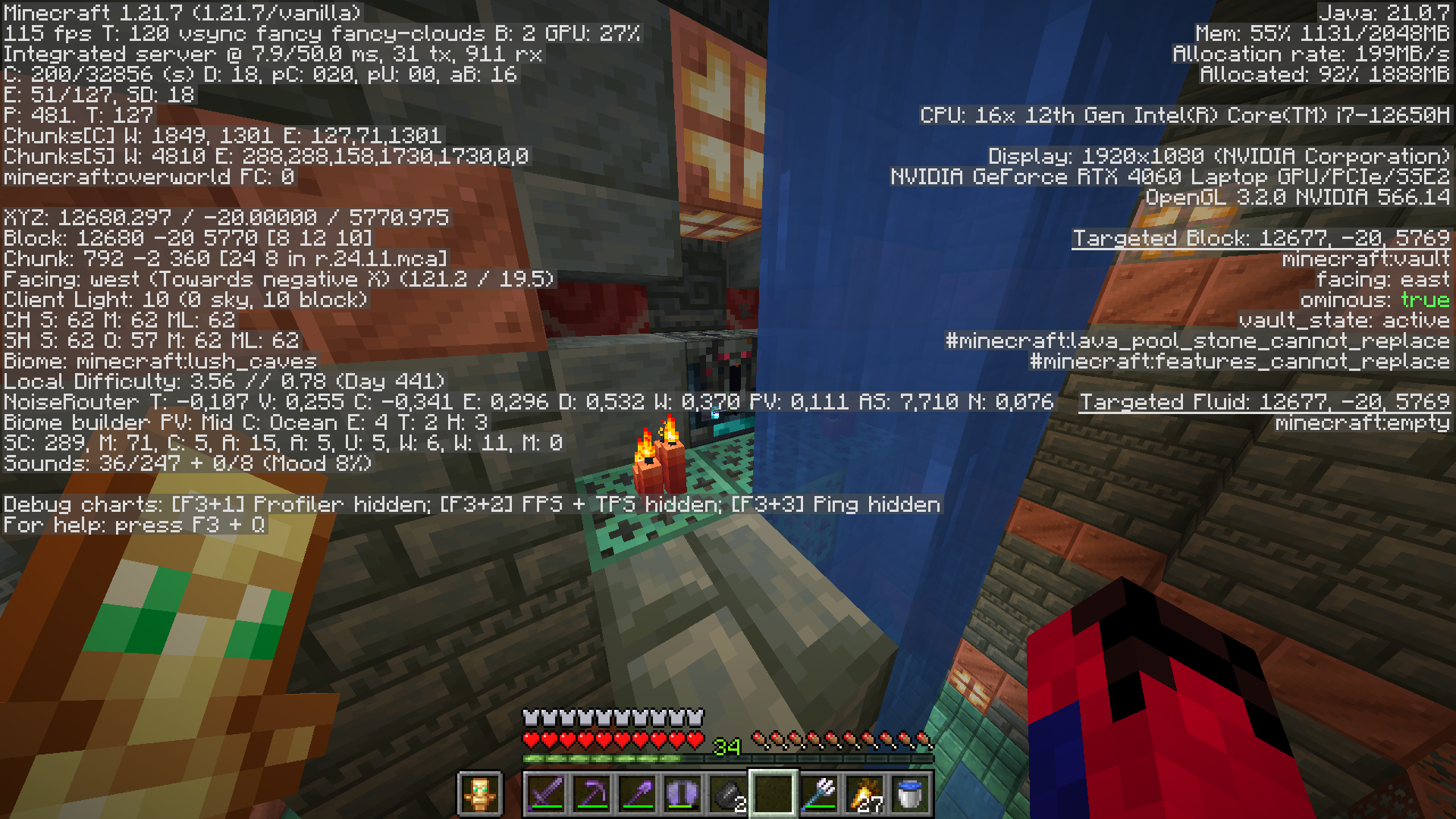 In version 1.21.7 of Minecraft Java Edition, Trial Vaults (reinforced chests) cannot be opened in Survival Mode even if the Trial Spawner challenge has been successfully completed and you have a Trial Key. I tried the following: Activate a spawner in a Trial Chamber in a Survival world. Complete the entire battle without dying. Obtain the Trial Key from the battle. Approach the spawned Trial Vault (which appears next to the spawner). Expected result: The chest opens with the key. Actual result: The chest does not open, and no message or sound is displayed. Right-clicking has no effect. I tried the same procedure in a new world in Creative mode, and the Trial Vaults do work as expected. That's why I think it's a survival-specific bug or a world condition. Additional Notes: This bug didn't occur in previous versions like 1.21 or earlier snapshots (like the one that featured the Happy Ghasts), so it may be related to update 1.21.7 or later.