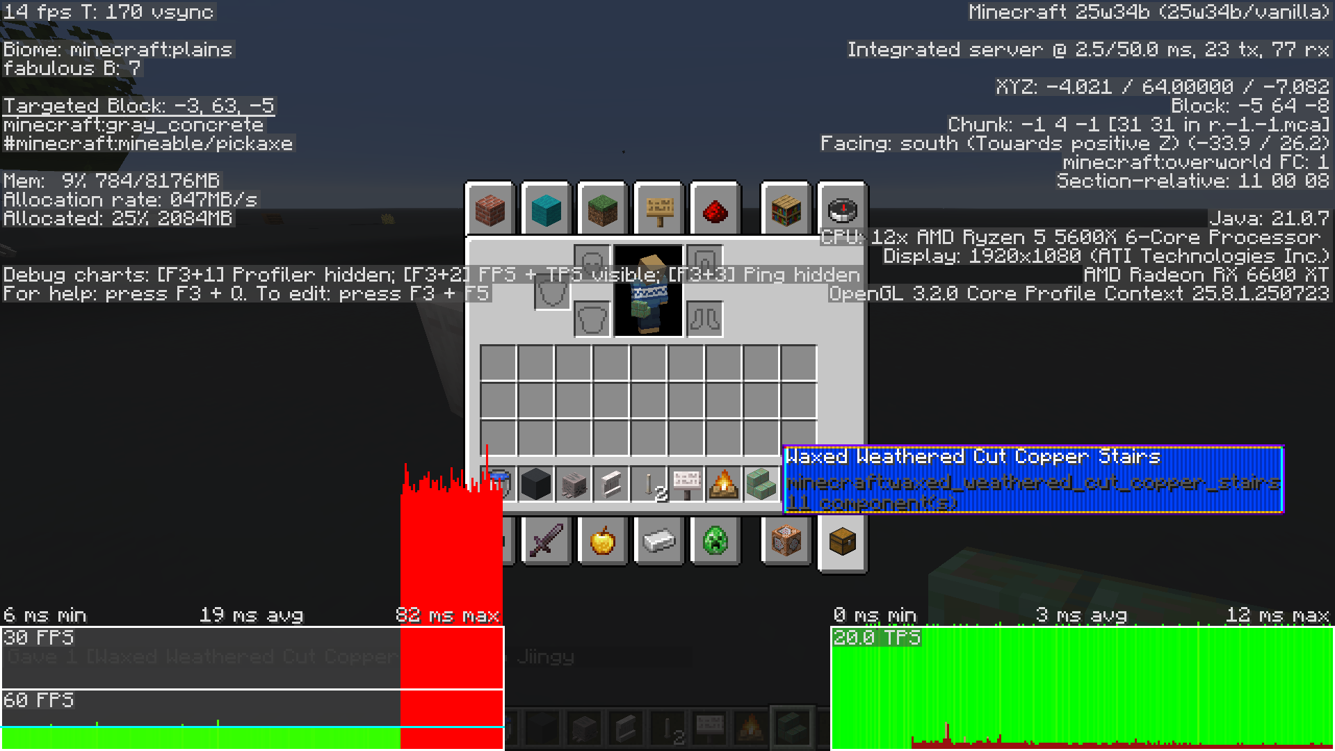As of version 25w18a to present 1.21.7: custom tooltips that use tiny and repeating patterns of pixels (less than 2x2) now lag when rendering larger tooltips.