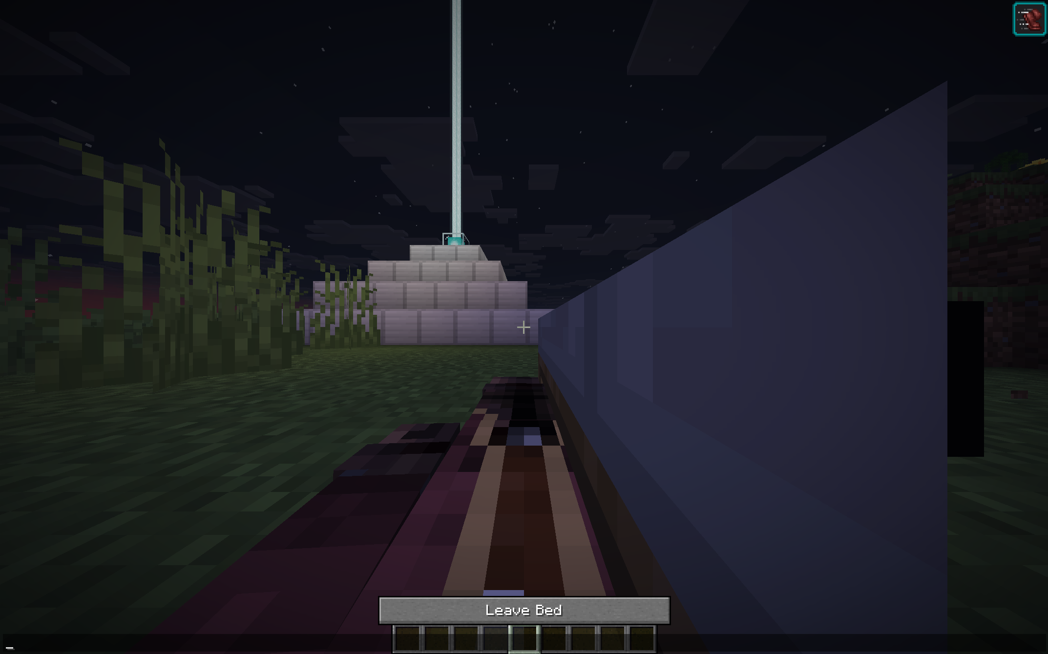 Actual result: Clicking the bed when gliding on elytra causes the player model to stand up for a second inside the bed. Related to this, movement is carried over when entering a bed, but snapping back to the center of the bed if the player model would leave the bed’s block. So if movement is carried over a tiny amount over the edge of the bed and still inside of the block of the bed, the player would also be on the ground (As shown in picture).