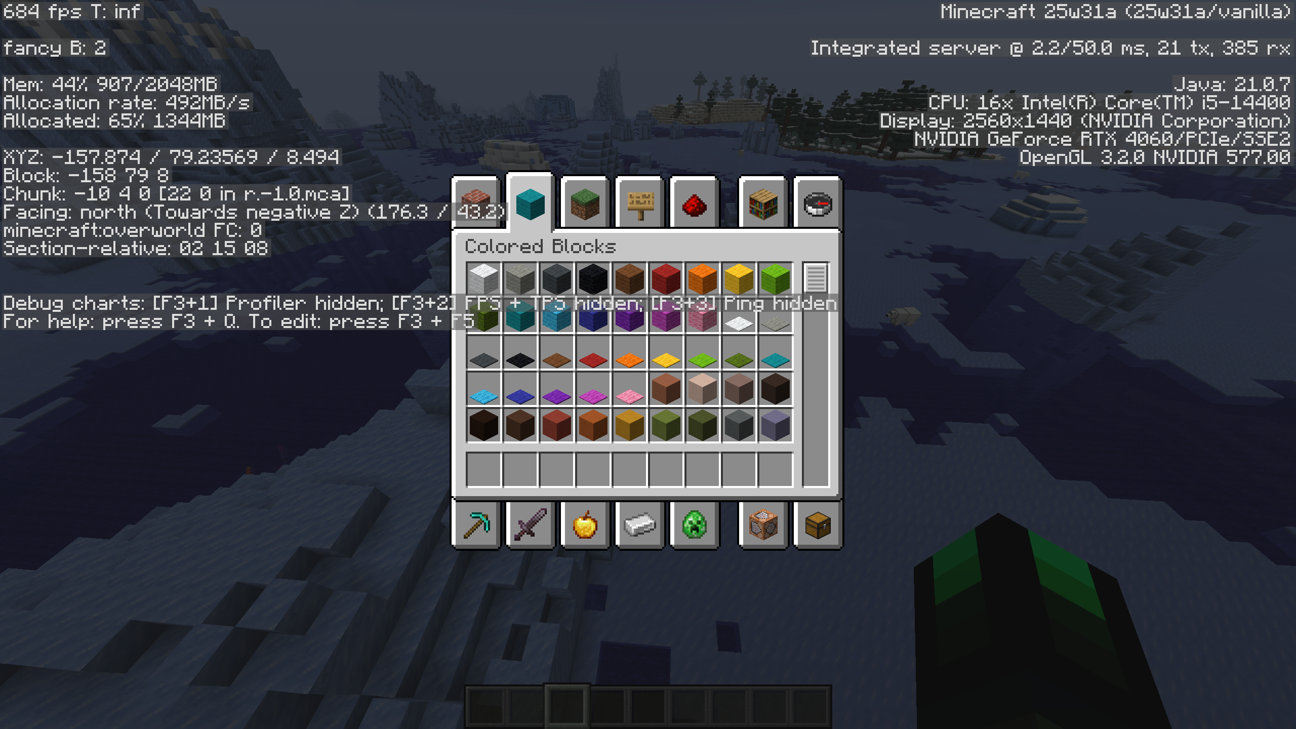 when you have the F3 screen ON and then open a chest or your inventory, the words from the F3 screen overlaps/are still visible, which hides certain items in the inventory or chests.