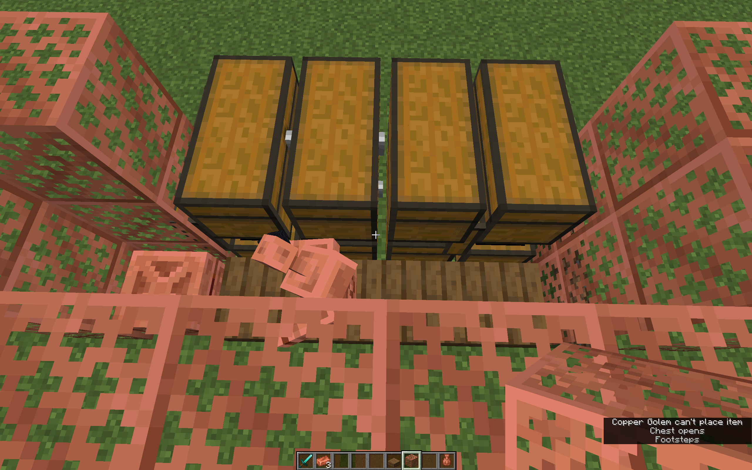 2.Copper gollems are not able to put any items into upper chest with this roof patern, like in the second picture