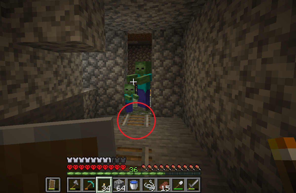 As shown in the image, the two zombies seem to have a clear path to reach me, however, the only thing completely blocking their path is the rail at their feet