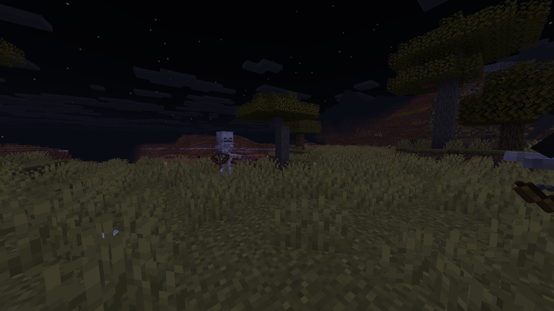 In normal gameplay, when being fired at by skeletons the bow does not appear in their hand, but it appears in the same position as when the skeleton is idle. leaving and rejoining the game fixes the issue, seems to happen randomly