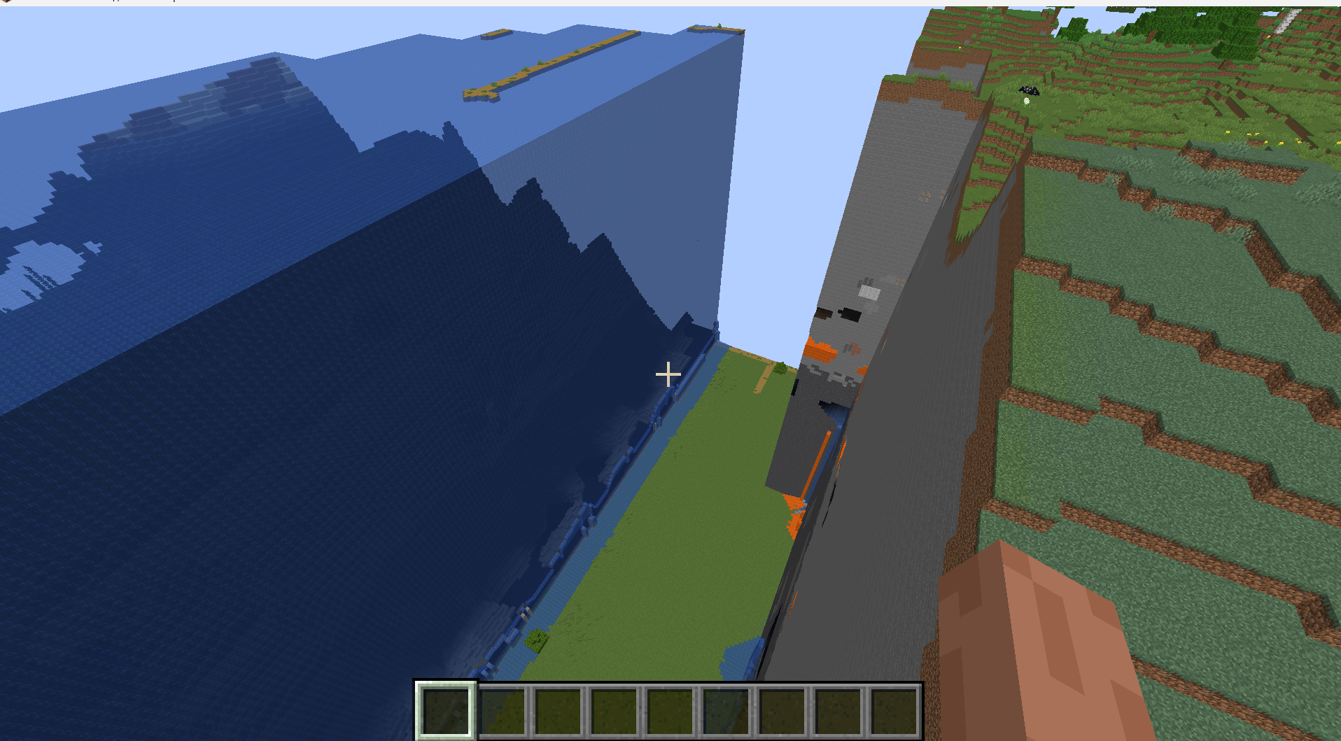 Then I came across strange chopped off chunks, and saw that below were chunks from a flat world