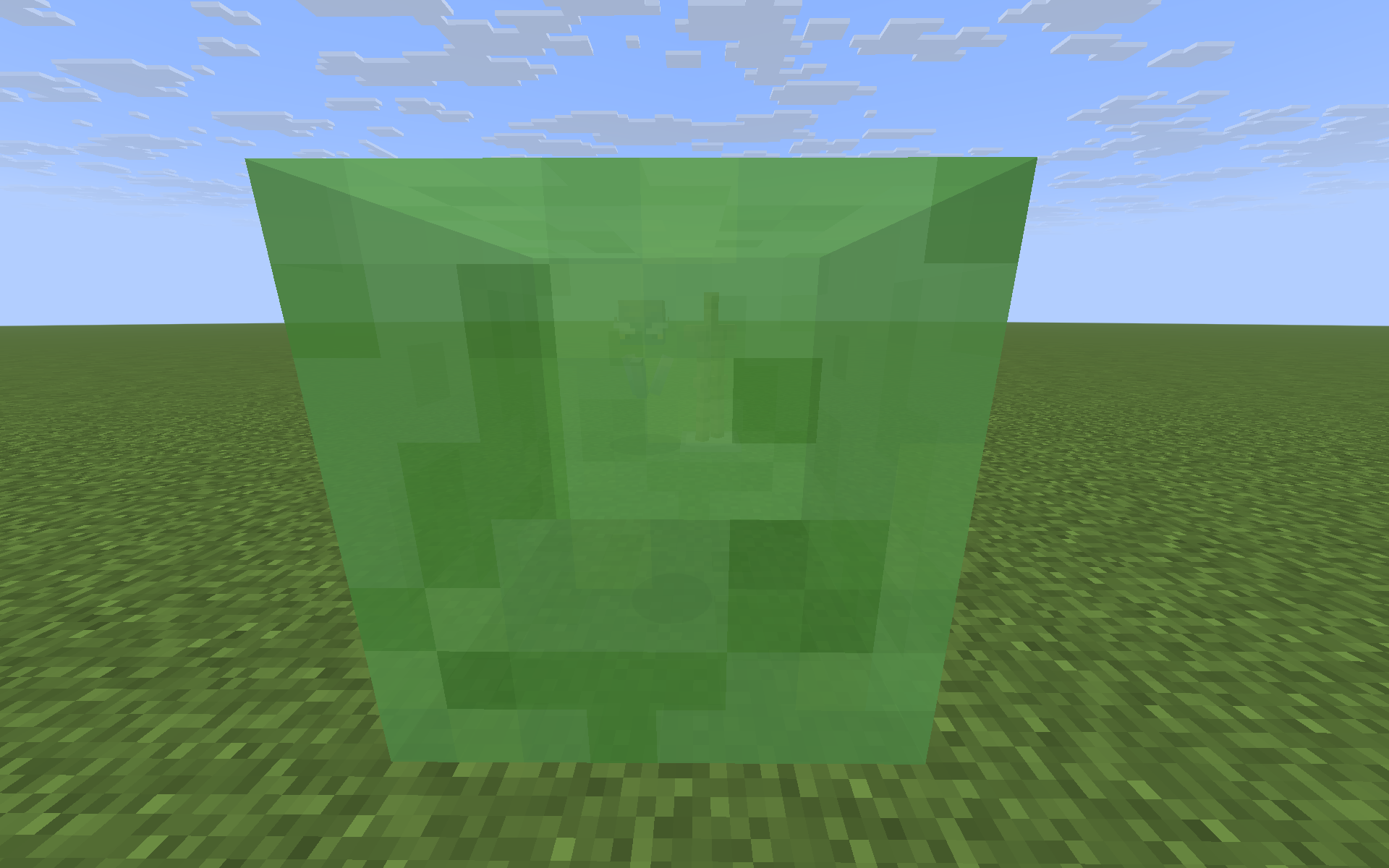 The transparency effect on slime entity does not render some entities/parts of entities (armor, items, breeze’s wind) when looking though them, including the slime’s inter cube and eyes.