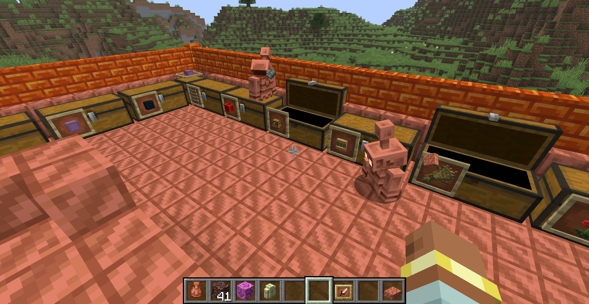 Bug when Copper Golem holds not full block for example: any slab or any wall...