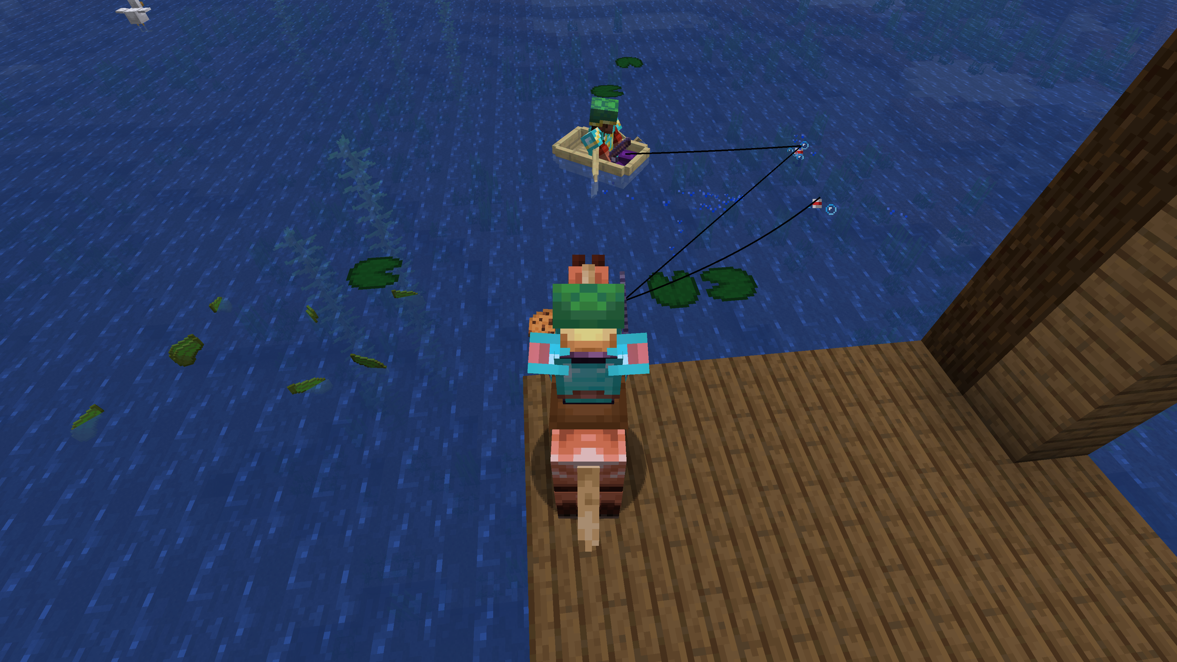 Update: It is NOT related with the horse! Even when both players do not ride a horse, there is still an extra fishing line.