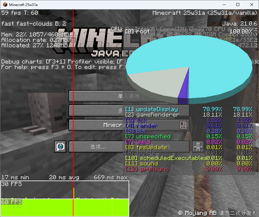 The F3 debugging screen can still be displayed on the main screen of the game
