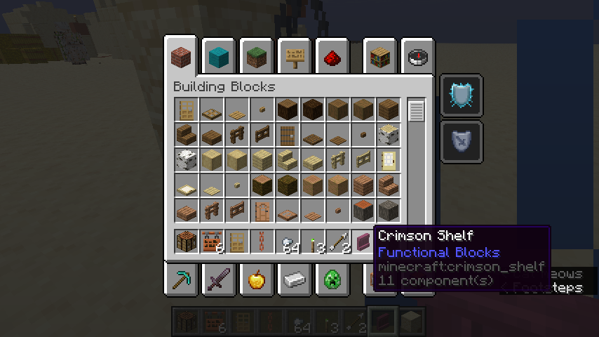 In Creative Mode, you cannot find any Shelf blocks in the Building Blocks tab.