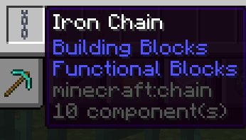Chain has been renamed to Iron Chain (due to the copper variant), which implies it should have an id of 'minecraft:iron_chain'