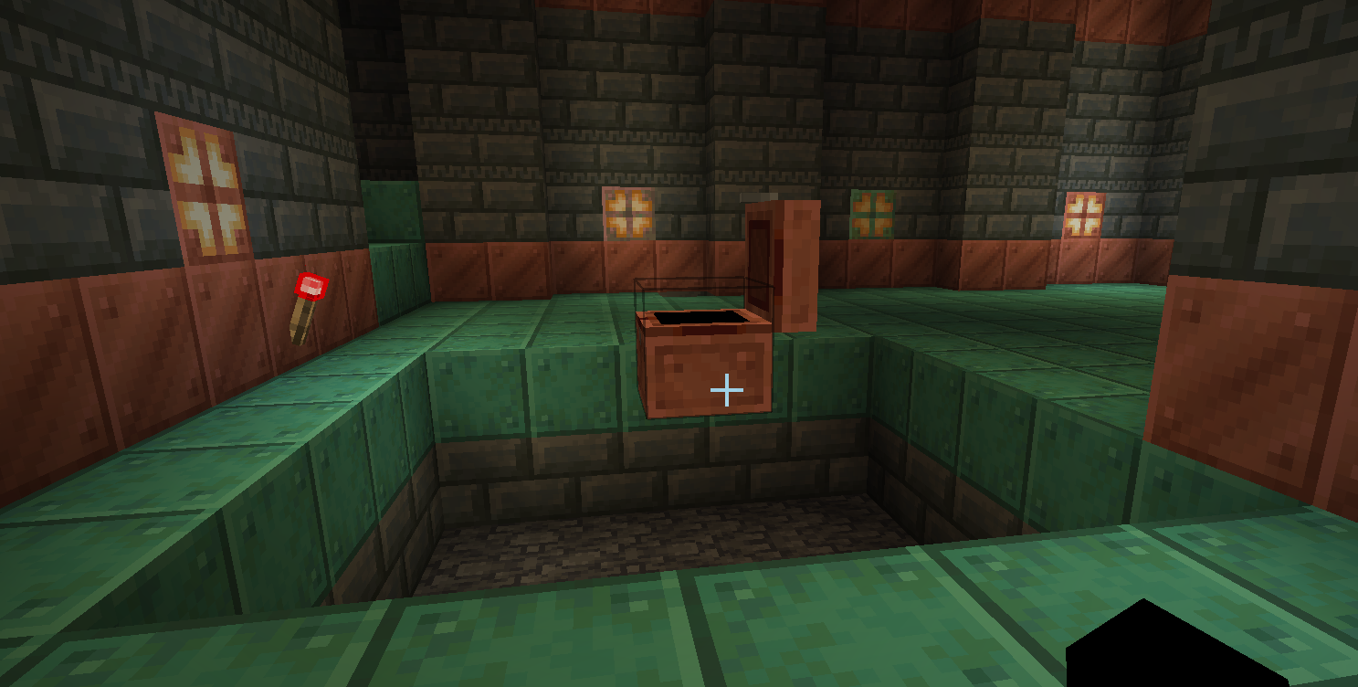 Copper Chests bug open and remain open when you kill a golem that is searching through the chests, giving a block update doesn’t do anything. Animations are reversed when you open the chest. Oxidation state doesn’t affect the chest, nor does waxing or unwaxing the chest