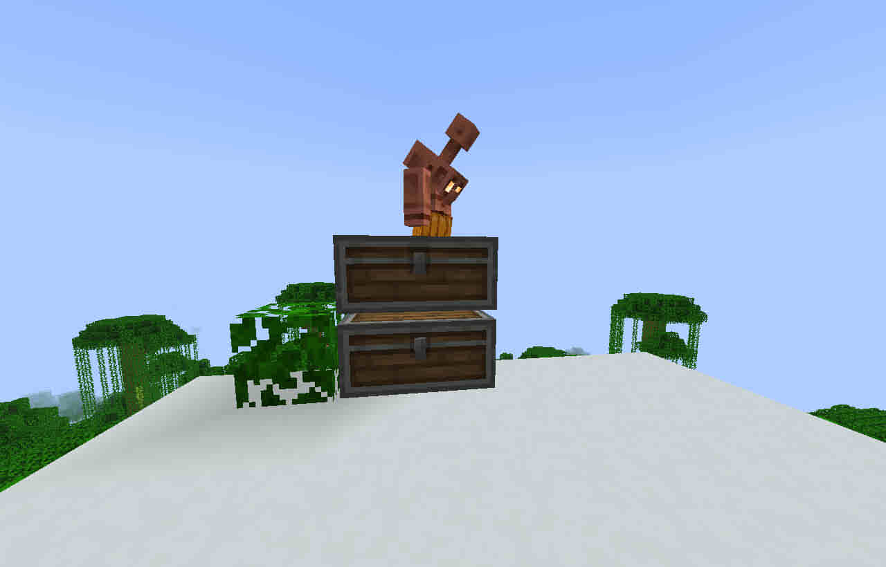 The Copper Golem occasionally freezes or gets stuck when it tries to open a chest that has a solid block placed directly above it. This issue happens both with chests located above the golem and, in some cases, with chests at the same level. When a block is present above the chest, the golem seems unable to interact with it and stops responding entirely.