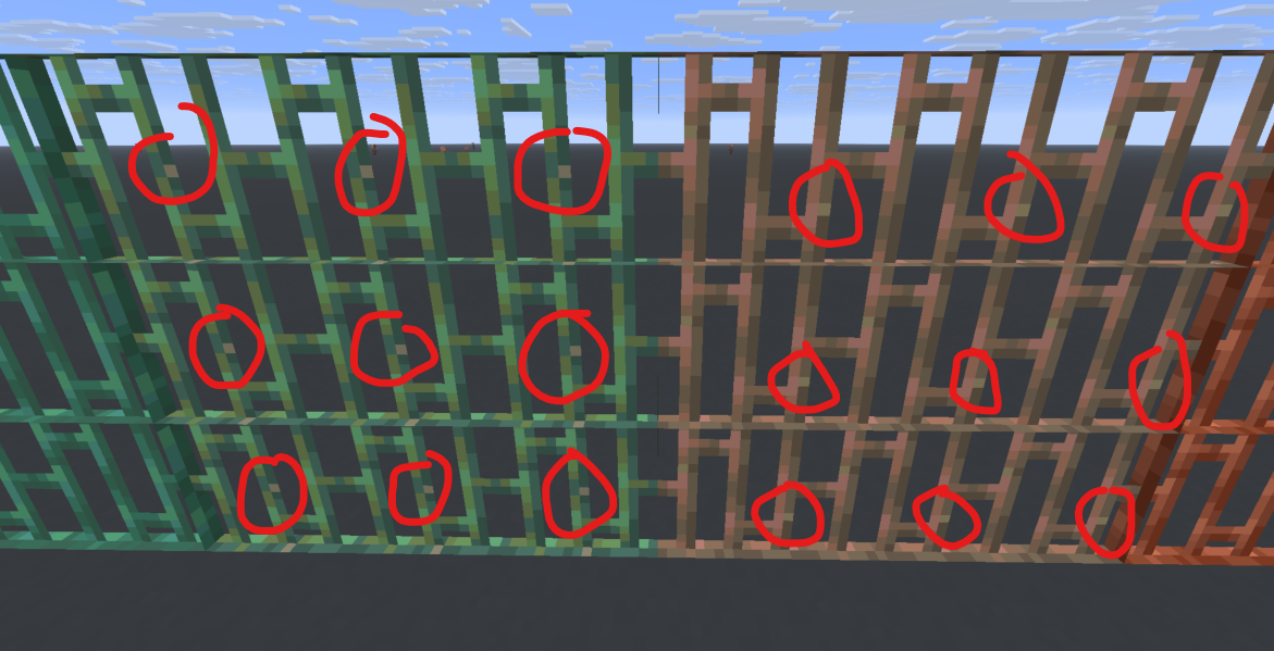 Reporting this understanding that this may be Invalid as art critique rather than a bug, but the weathered and exposed copper bars both have pixels that arguably stand out far too much, and appear unusual compared to the rest of the texture. The becomes more obvious the more bars you have around each-other.