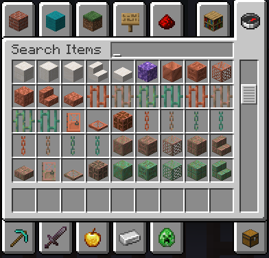 Copper bars and copper chains are grouped together instead of by oxigation state as other copper blocks.