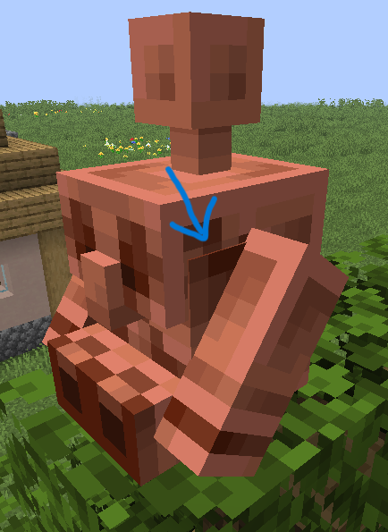 The Copper Golem statue in the sitting pose has a piece of texture is out of place.