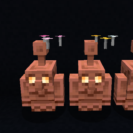 summon minecraft:copper_golem ~ ~ ~ {equipment:{head:{id:"minecraft:pink_petals"}},NoAI:1b}summon minecraft:copper_golem ~ ~ ~ {equipment:{head:{id:"minecraft:wildflowers"}},NoAI:1b}Observed behavior