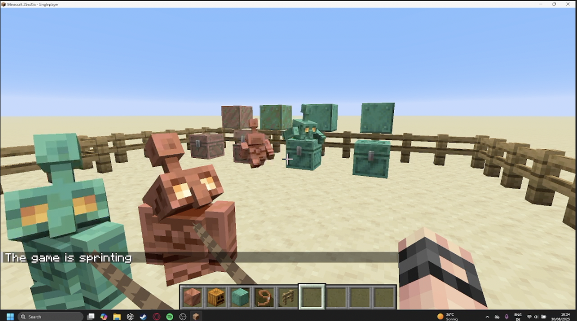 /tick sprint 3dto accelerate the oxidation process.Wait for the Copper Golem to fully oxidize and turn into a statue.