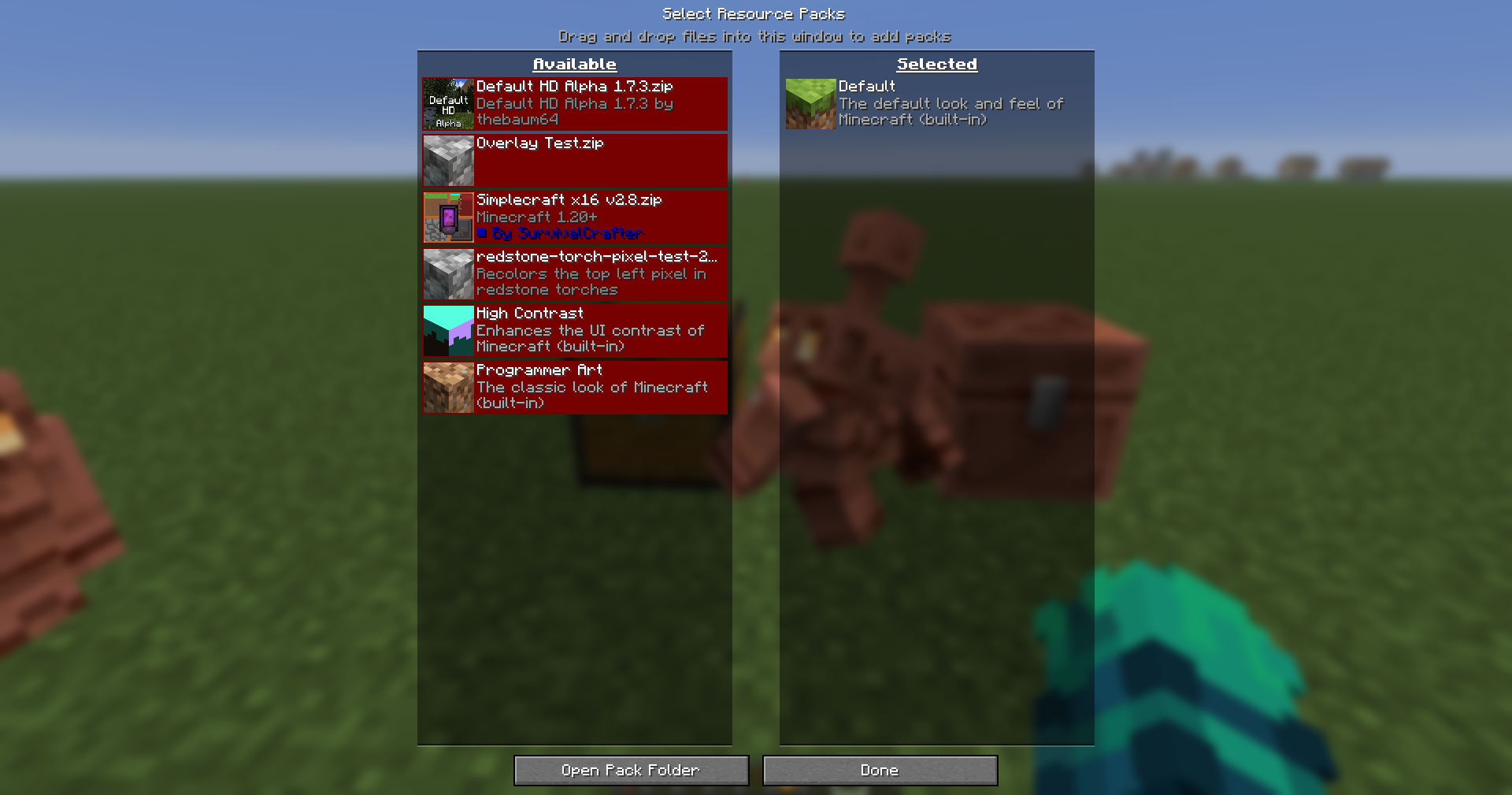 As the title say, the Programmer Art and High Contrast resource pack are incompatibles in the newest snapshot.