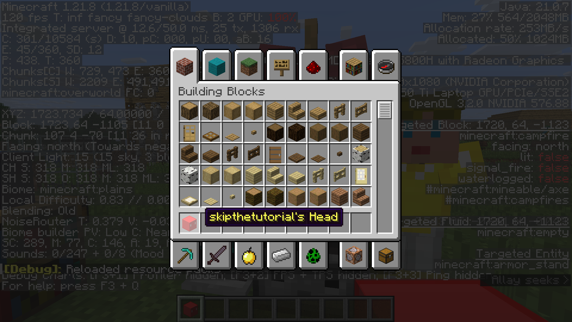 I found an extremely strange bug. So in version of 1.21.5 I used the command /give @p minecraft:player_head[minecraft:profile="skipthetutorial"], and it gave me the correct player head. However, now I used the same command in the same version and it gave me a normal Steve head. I would say it’s because of the new fetchprofile command, but that didn’t give me the correct player head either. It did, however, work with other player skins for some strange reason. I used /fetchprofile name skipthetutorial, and then clicked “Give Item” and it gave me a Steve head. Maybe the reason it gave me a Steve head is because it errored out because it’s a pretty long username, but that doesn’t explain why it worked that one time. When I put the 1.21.5 command in a repeating command block, it just gave me many Steve heads, with the correct username, that filled out my inventory, and some of them occasionally stacked.