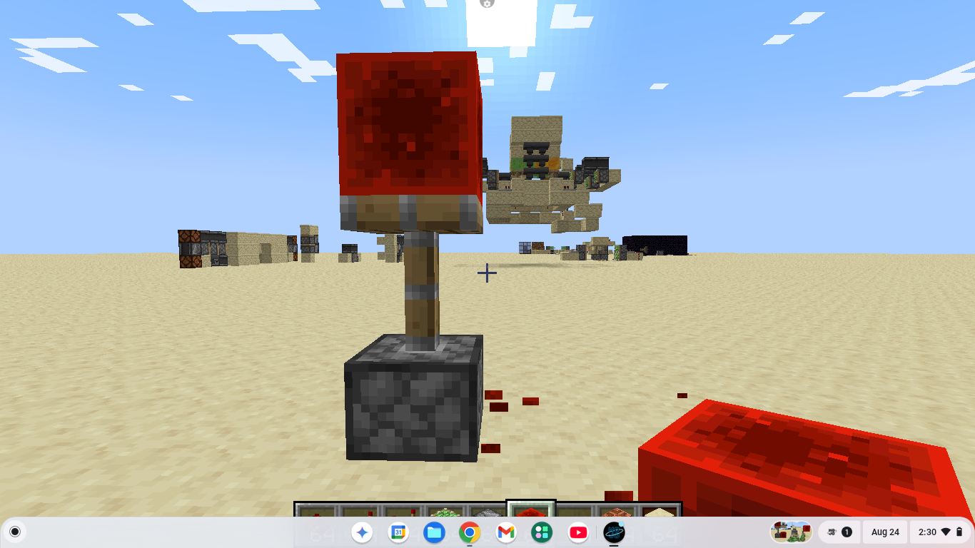 Also this can be repeated using a piston facing upwards. Place a piston facing upwards with a redstone block on top of the pistonβs head. Then power the piston with a second redstone block adjacent to the bottom of the piston. Break the second redstone block, and the piston will remain powered.