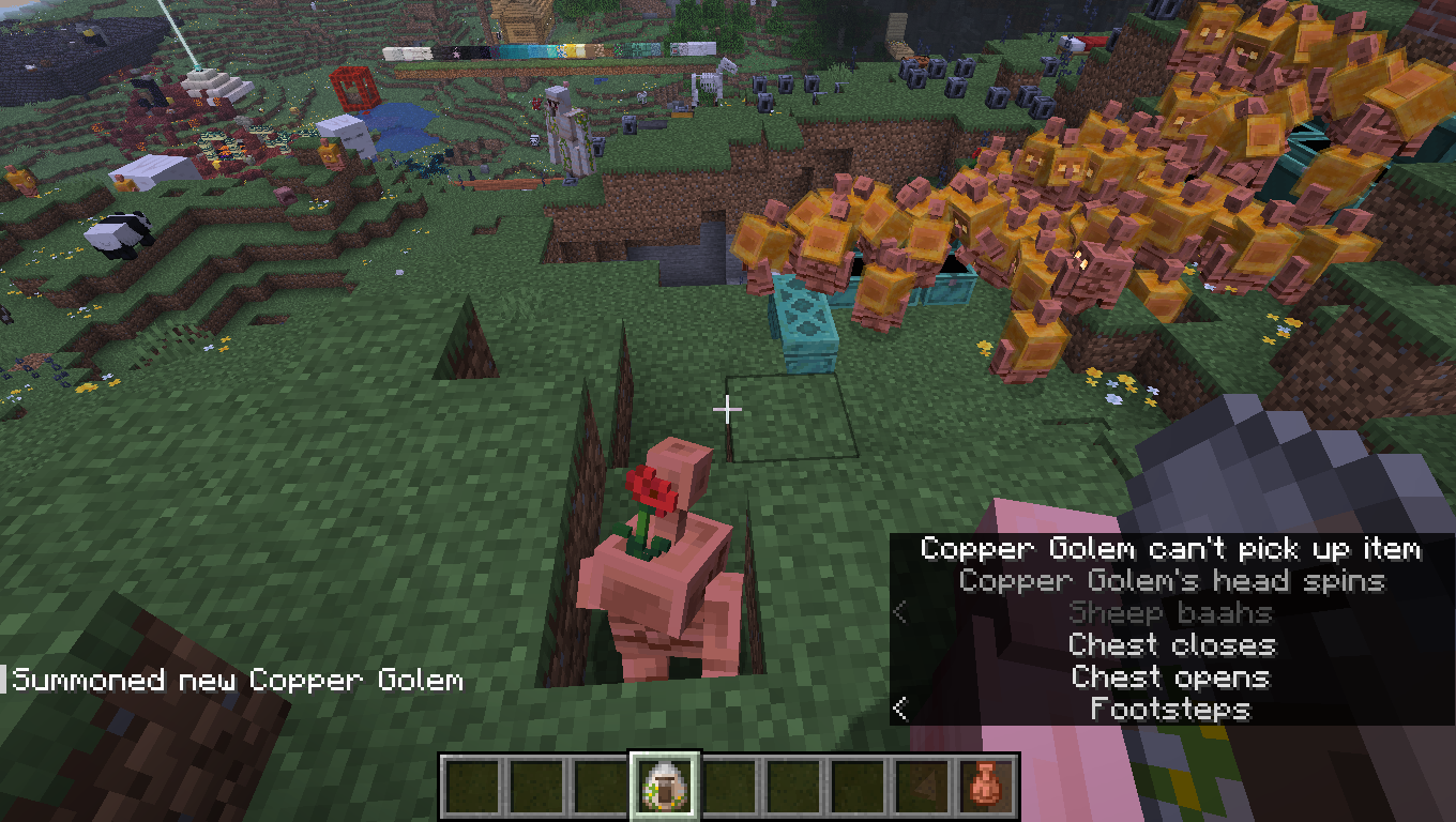Say “/summon minecraft:copper_golem ~ ~ ~ {equipment:{head:{id:"minecraft:poppy"}}}“
