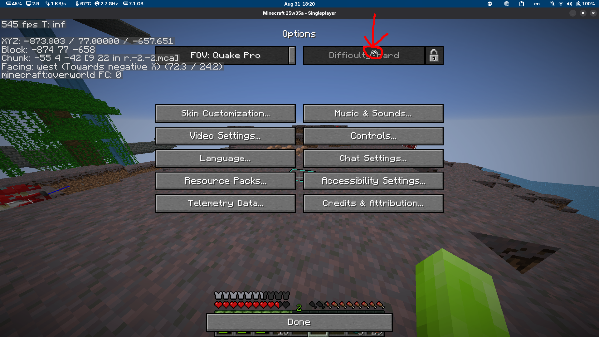 1. Hover over the difficulty icon in the game menu