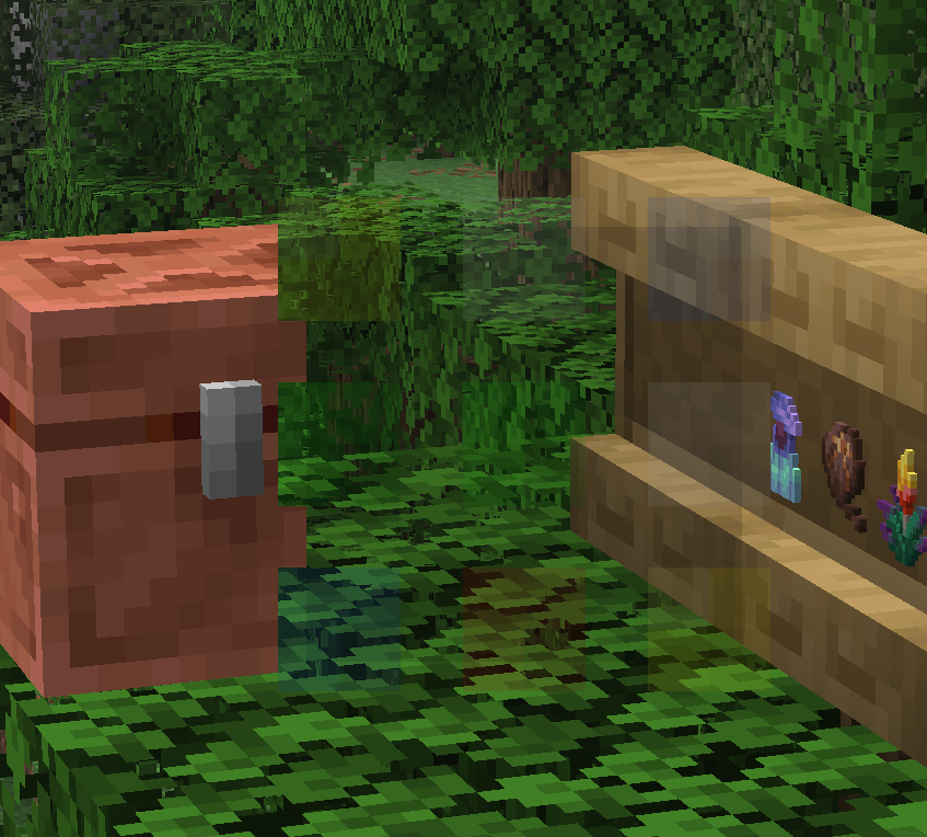 Block entities and water are not invisible. They appear as a solid, semi-transparent block, obstructing the view. Other blocks and entities are rendered correctly.
