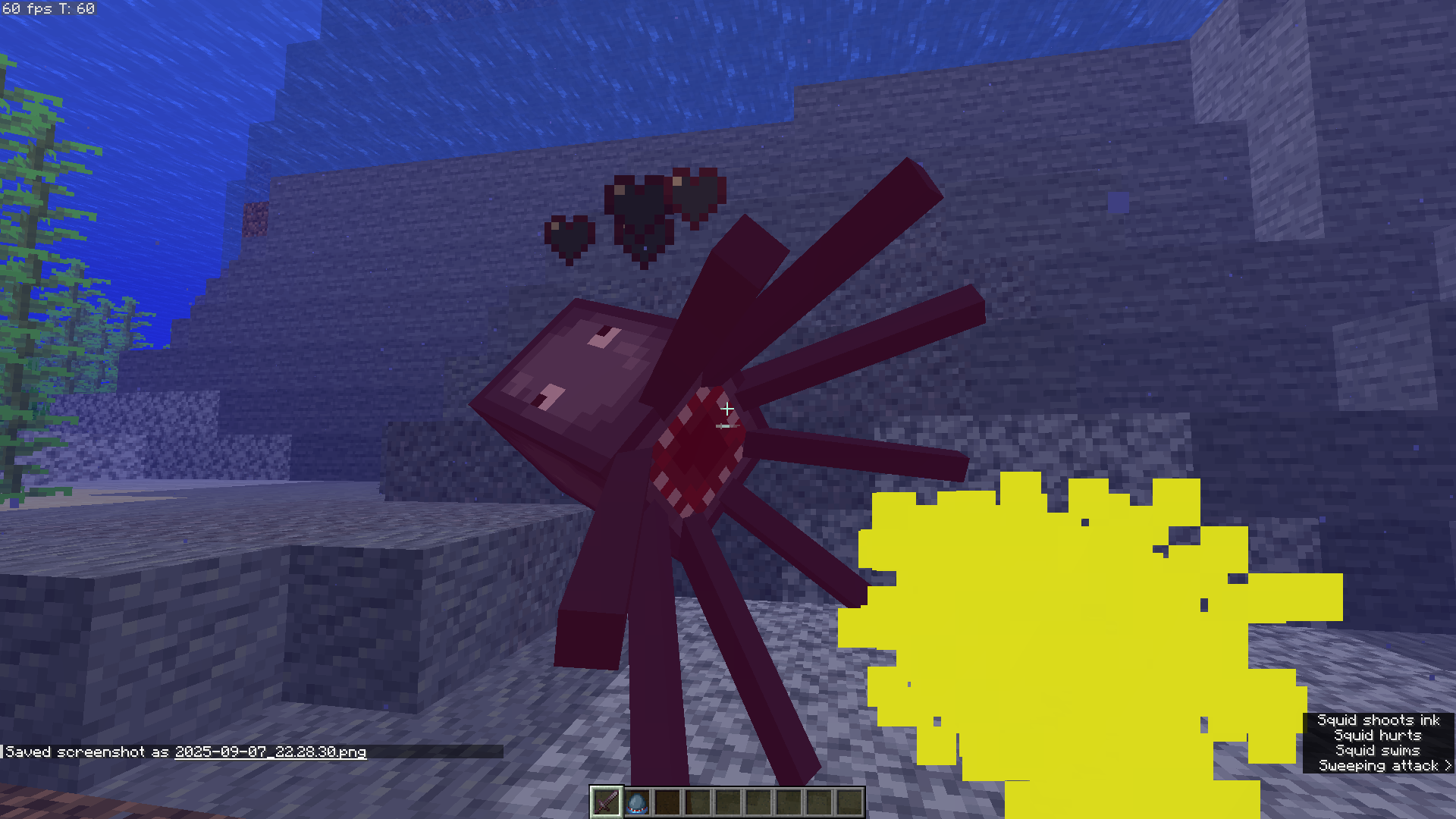 When playing my survival world in the latest snapshots I tried killing a squid and when it admits ink it was bright yellow