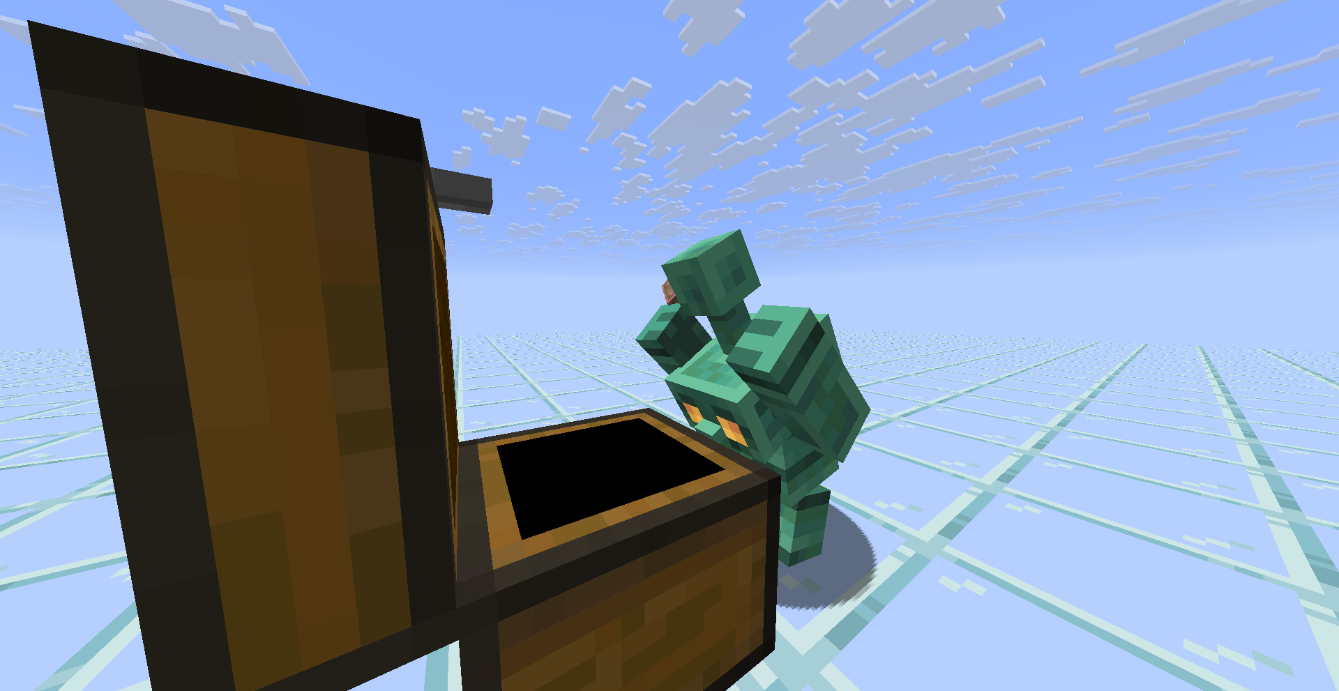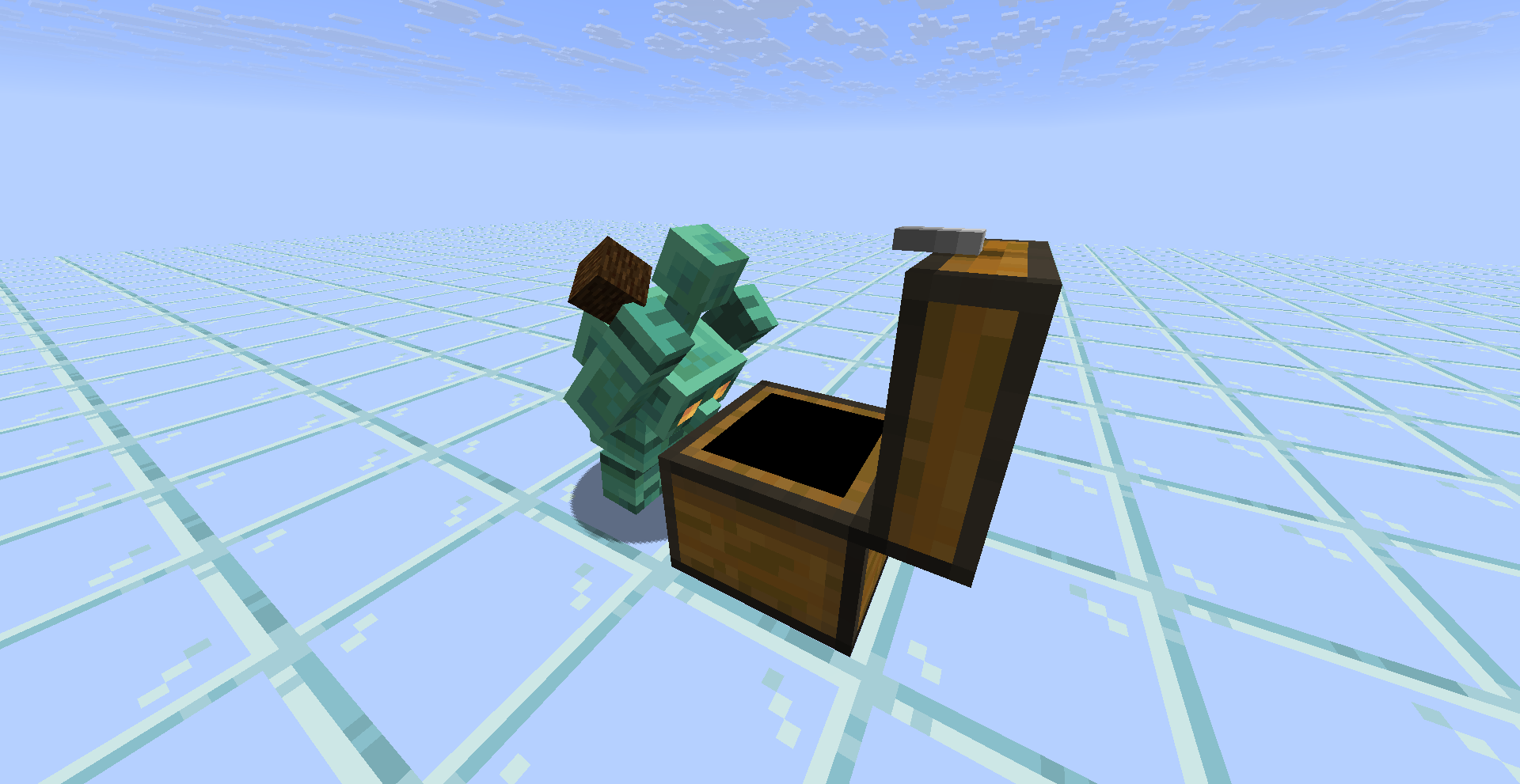 the copper golem appears to raise its arms above its head when it is looking through chests while holding an item and the way the arms move before placing an item suggests that the copper golem is not suppose to have the arms up in the air and usually its arms would rest near at the base of the chest.