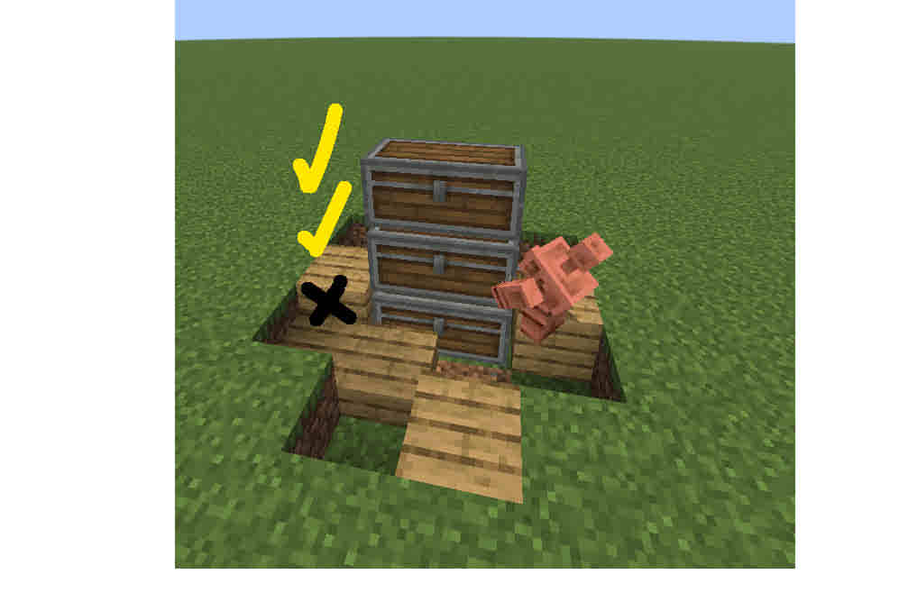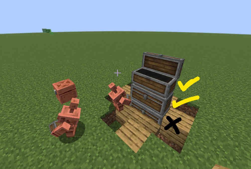 But if both the air block and the chest are on the same side ( both on the right), the Golem can open all three chests (bottom, middle, and top).