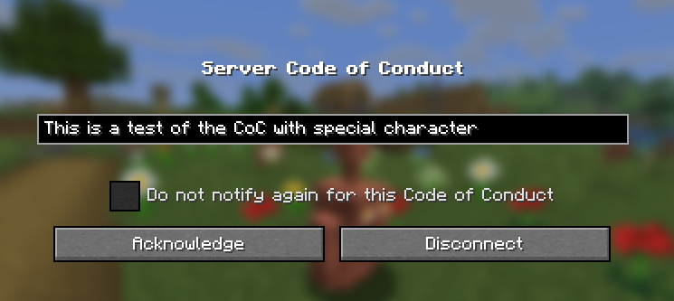 Codes of conduct including non-English characters such as ü or ß do not work and prevent the server from starting. Since all languages are supported as separate files, it makes no sense that letters from other languages are not supported. The following error is shown in the console: